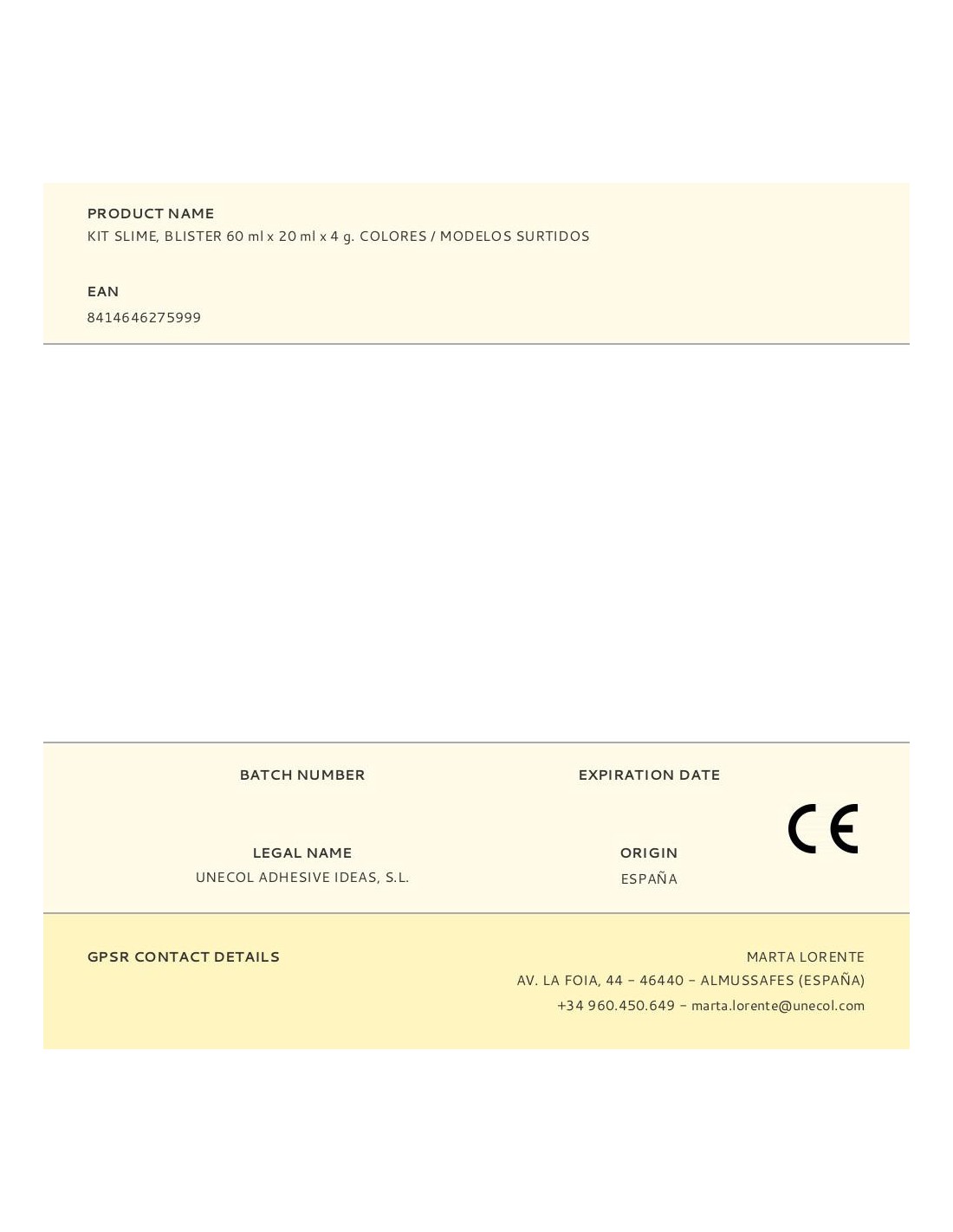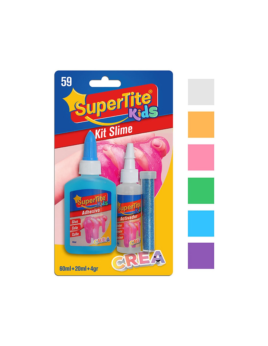 Kit slime, blister 60 ml x 20 ml x 4 g. colores / modelos surtidos