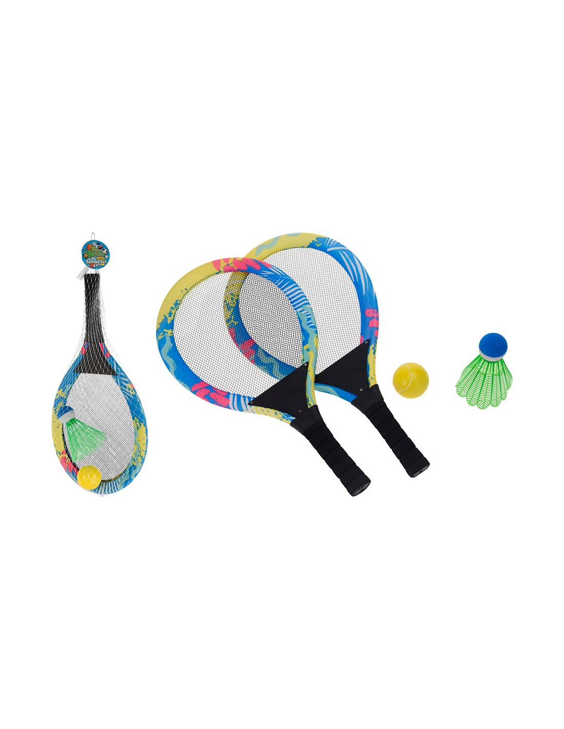 Set de 2 raquetas con pelota de tenis y badminton