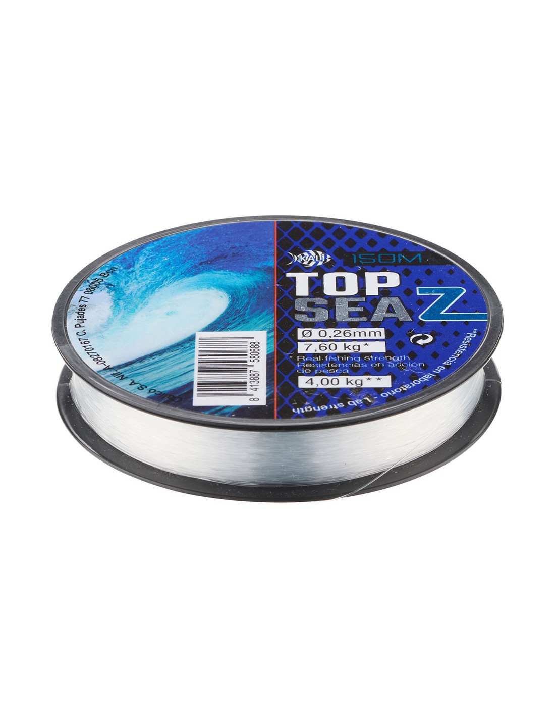 Bobina de 150 m de nilon transparente de 0,26 mm de diametro, resistencia en accion de pesca de hasta 7,60 kg