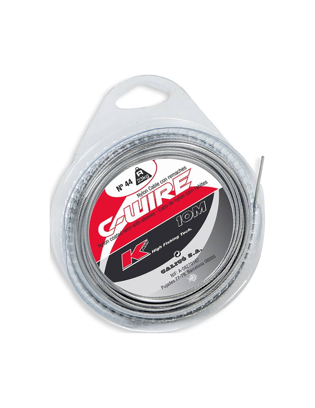 Rollo de 10 m de cable de acero forrado de nilon. acero inox cal 304. se sirve con casquillo para remachar diametro 0,42 mm resistencia 40 lbs