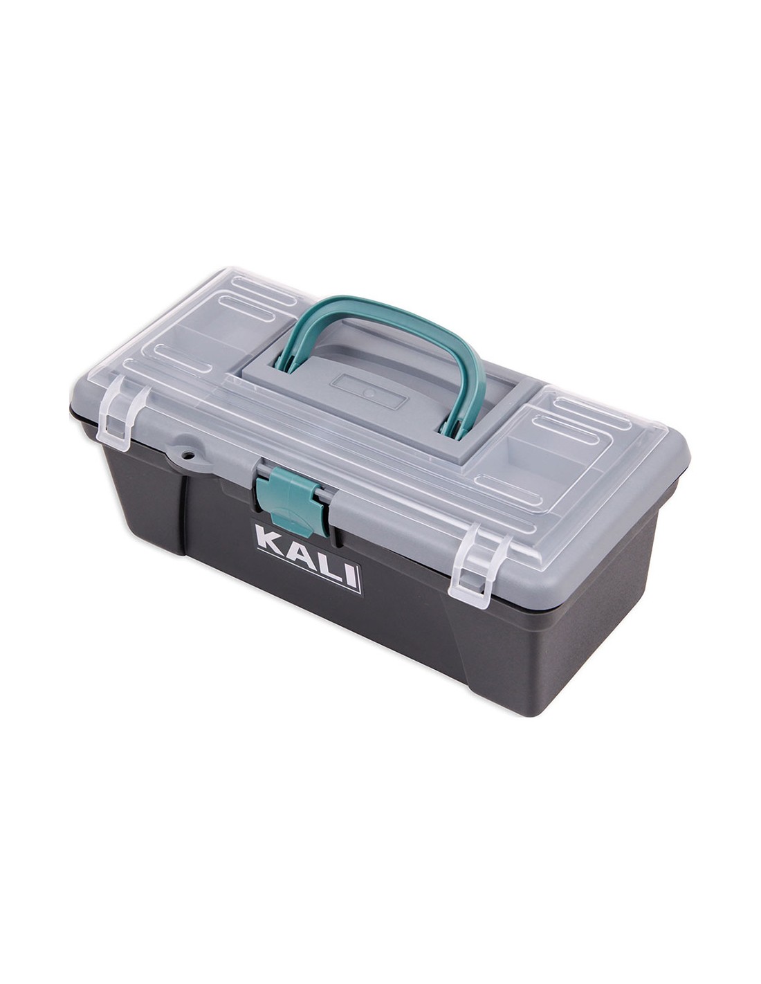 Caja maleta con 4 compartimentos individuales en la tapa, dimensiones 30 x 15 x 11,5 cm