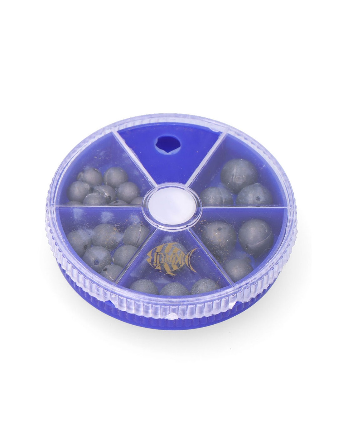 Surtido de plomo redondo perforado. 100 g repartidos en 5 gramajes diferentes.