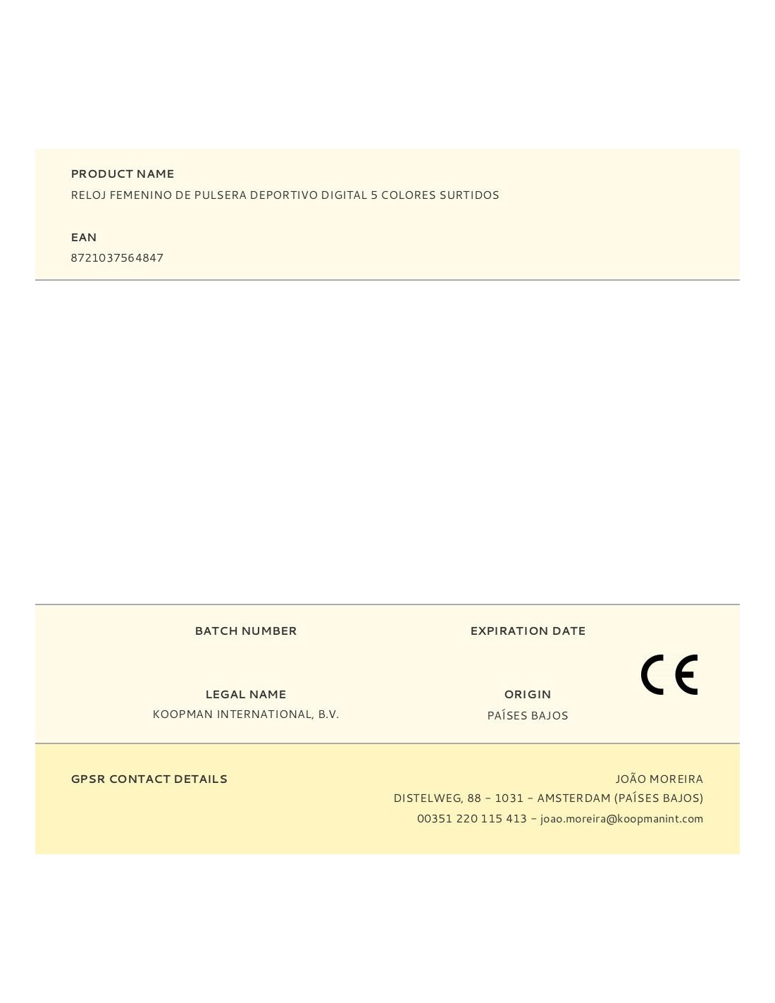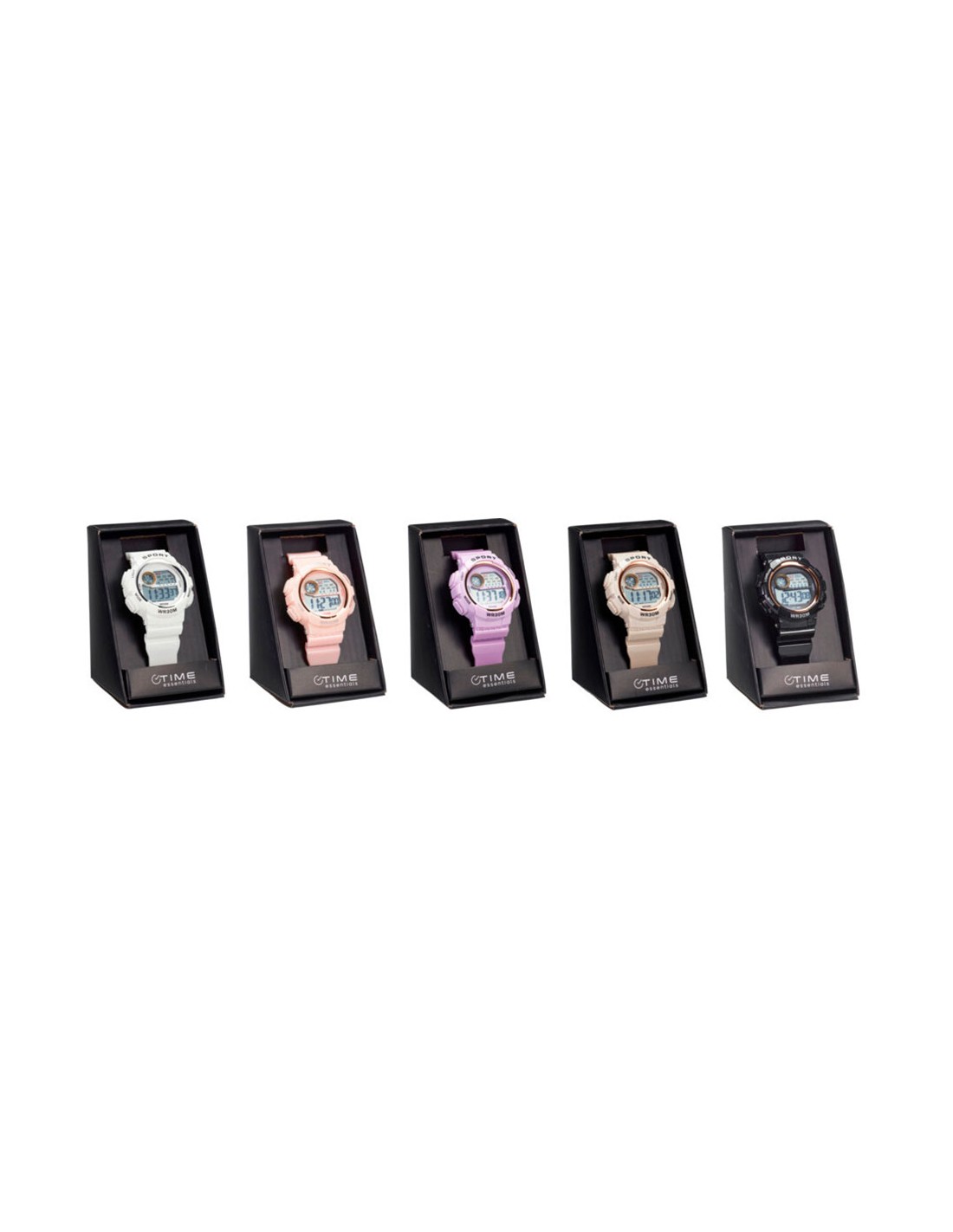 Reloj femenino diseño deportivo digital 5 colores materiales abs 40%, correa tpu 40% empaquetado idividual en una caja de regalo de cartón negro 72 x 63 x 100 mm presentado en expositor de 20 uds
