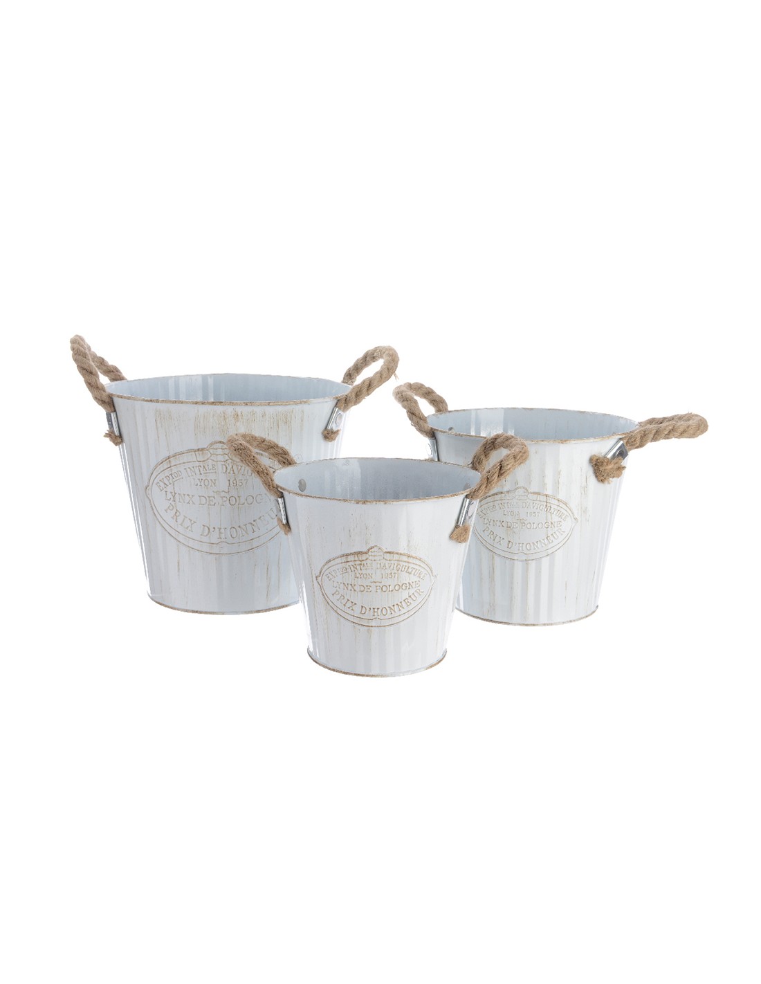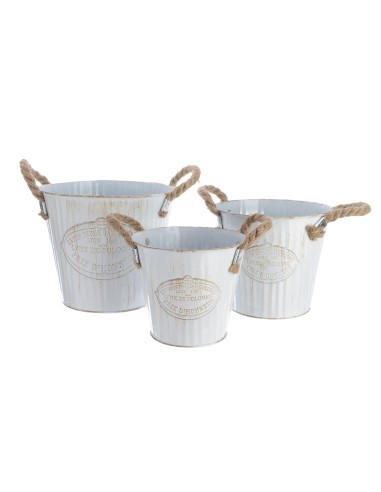 Cubo de zinc con asa de cuerda set de 3unid. dimensiones: ø20x17cm ø17x15cm ø15x13cm. (diametro/altura)