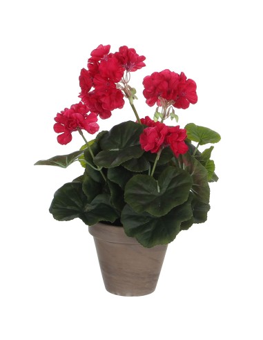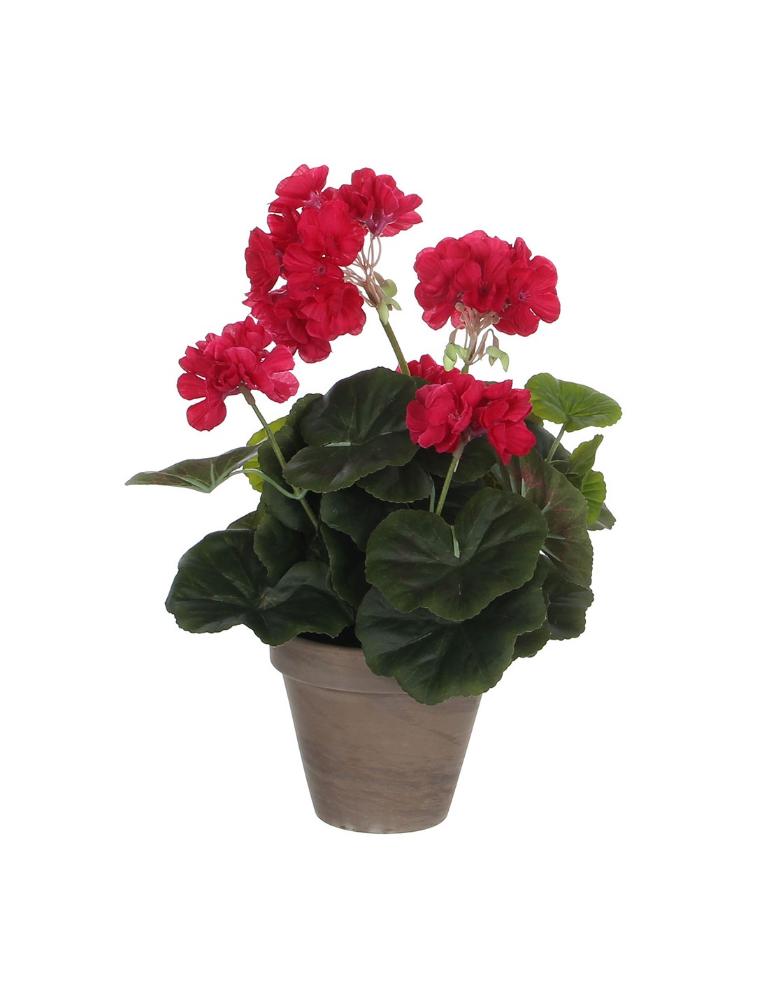 Geranio rosa oscuro pvc con maceta plastica gris, alta calidad, efecto natural ø11,5x33cm