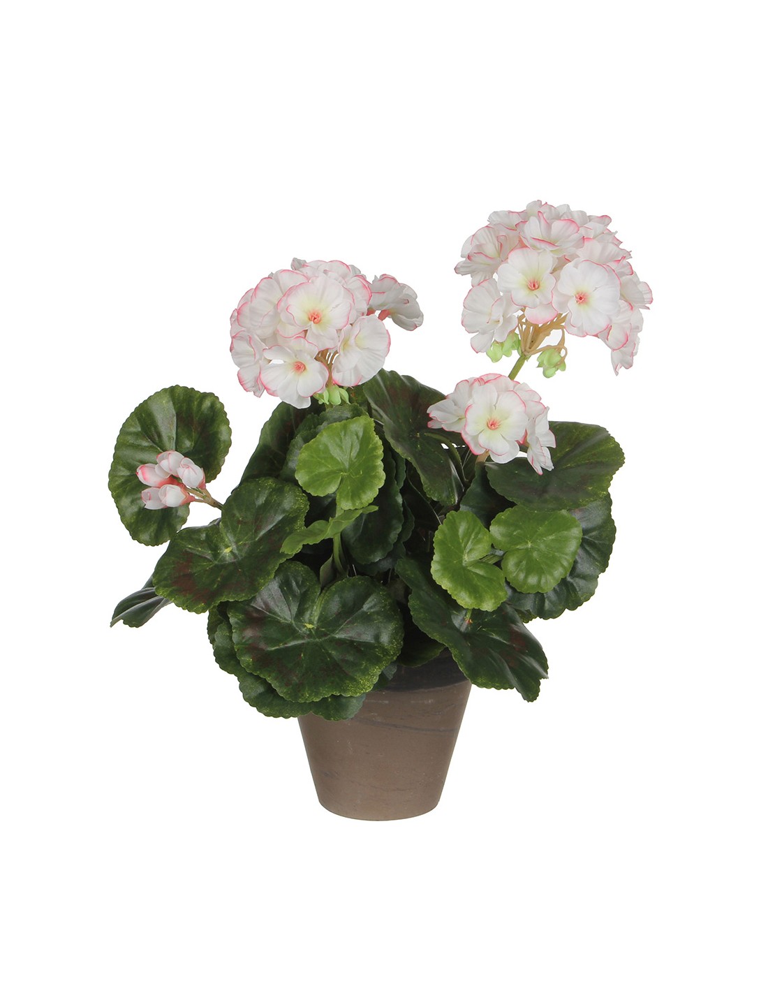 Geranio blanco rosa pvc con maceta plastica gris, alta calidad, efecto natural ø11,5x33cm