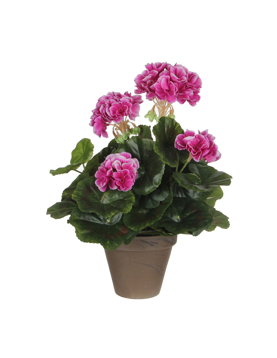 Geranio púrpura pvc con maceta plastica gris, alta calidad, efecto natural 26x26x33cm