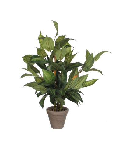 Hosta verde pvc con maceta gris, alta calidad, efecto natural 15,5x65cm