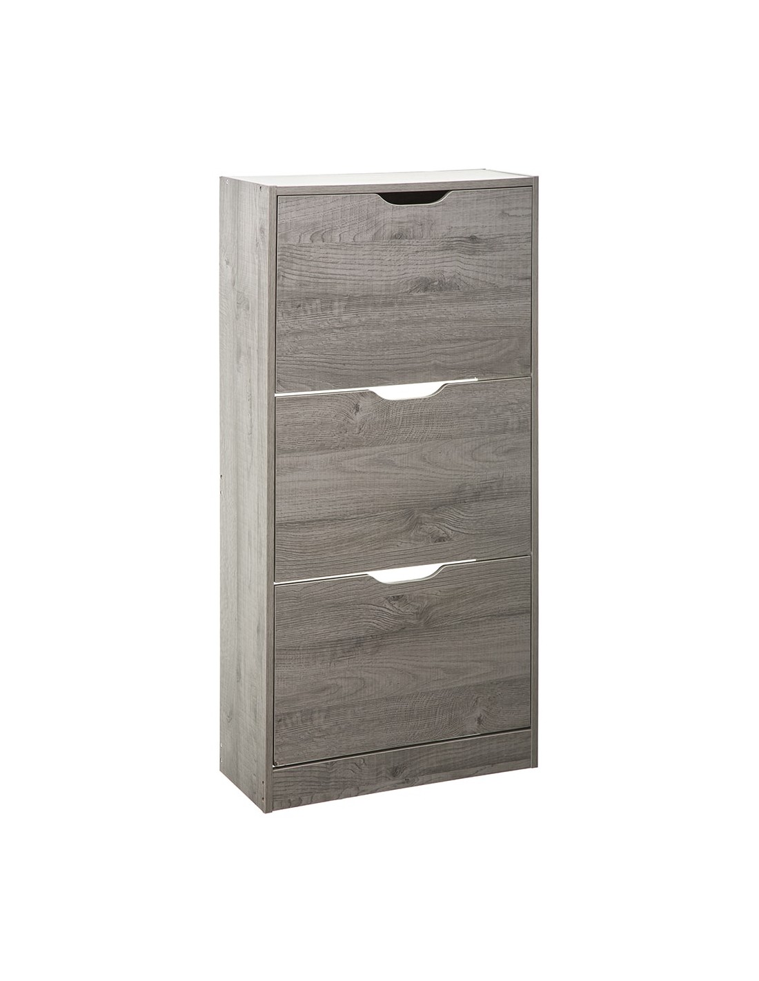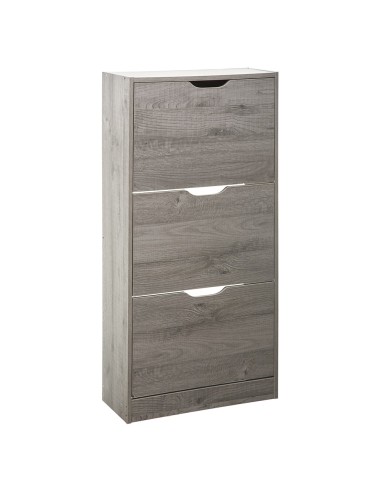 Zapatero de madera 115x60x24cm color gris. 3 compartimentos para 18 pares de zapatos