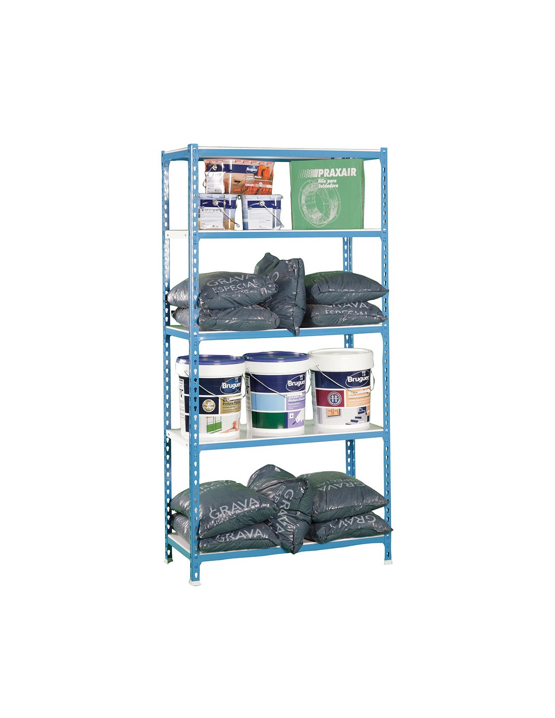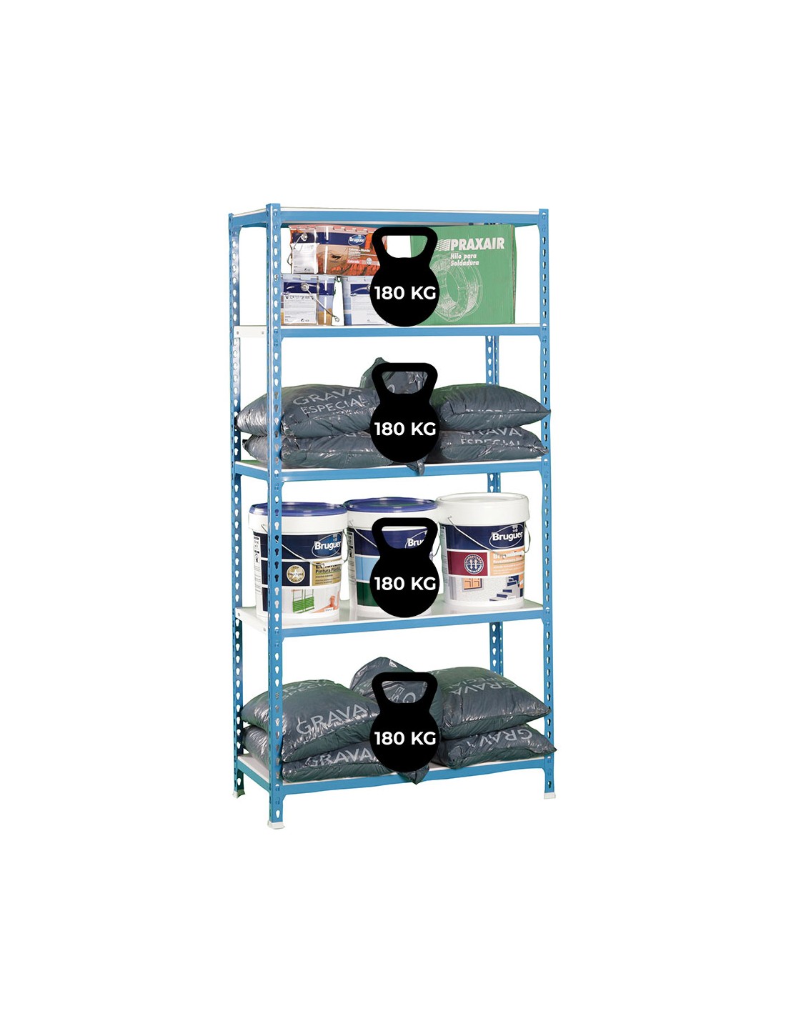 Estanteríametálicasintornillosdecolorazul/blancoconcapacidaddecargaporestantede180kg.elnúmerodeestanteses5ylasmedidas(altoxanchoxfondo)son1800x900x400mm.laúnicaestanteríaquepermiteponerlasbandejasentresposicionesdiferentes.productoespañol,calidadeuropea. medidasenusodelproducto:1749x910x410mm