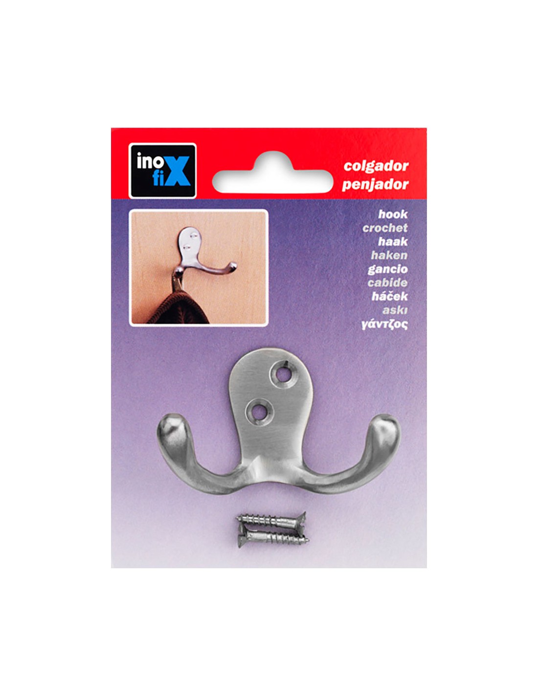 Colgador clasico doble de laton niquel satinado (blister) inofix
