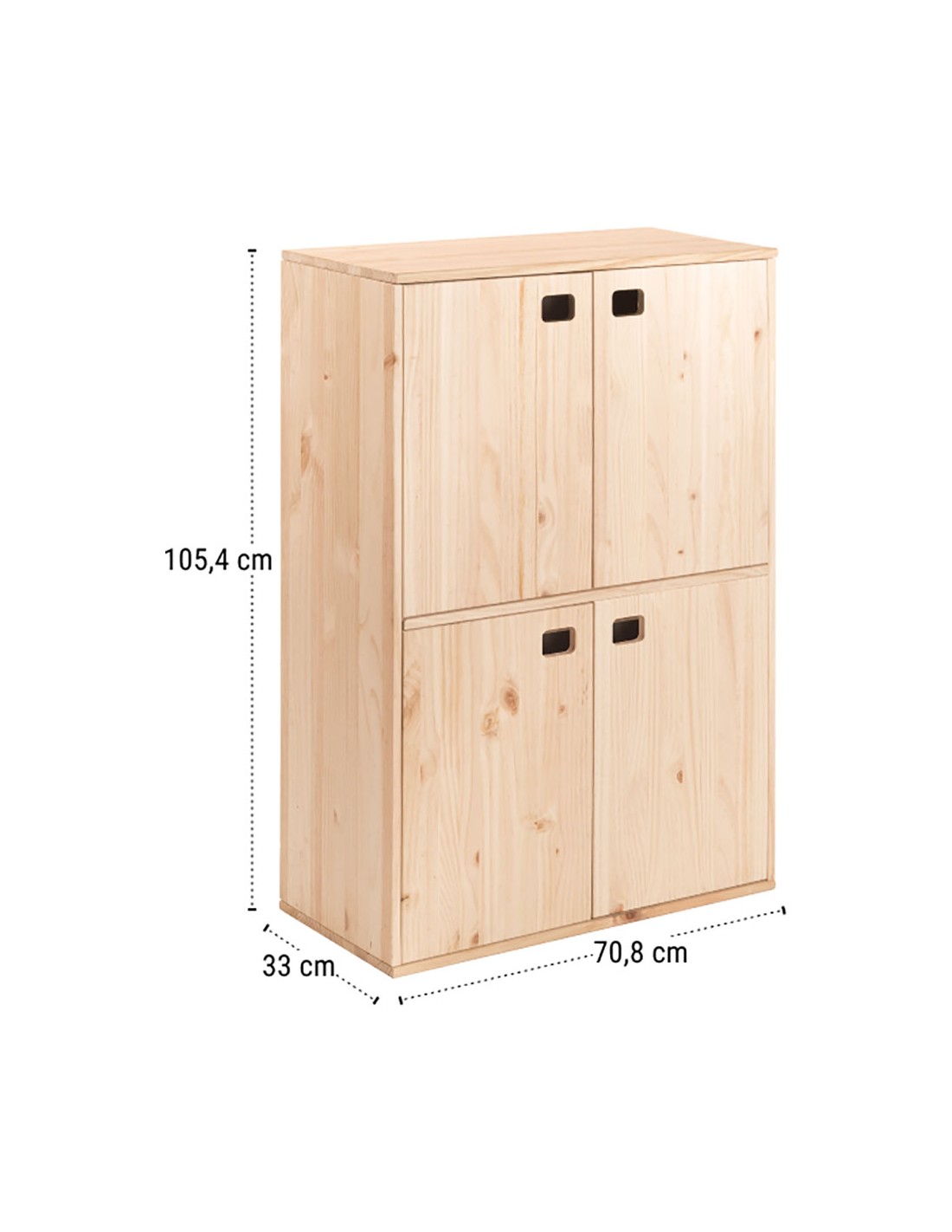 Mueble dinamic 4 puertas pino macizo astigarraga. medidas: 105,4x70,8x33cm (alto/ancho/fondo) y 16mm de grosor. 4 baldas interiores regulables en altura.
