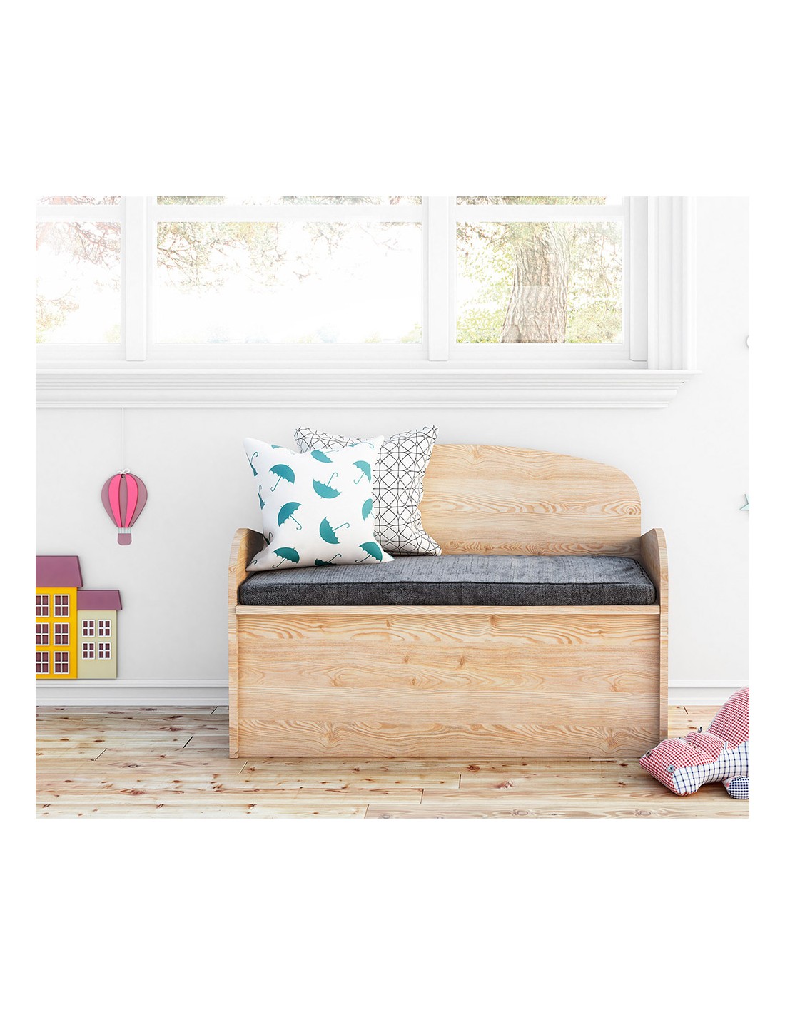 Banco baúl deco de pino 90x62x38cm astigarraga