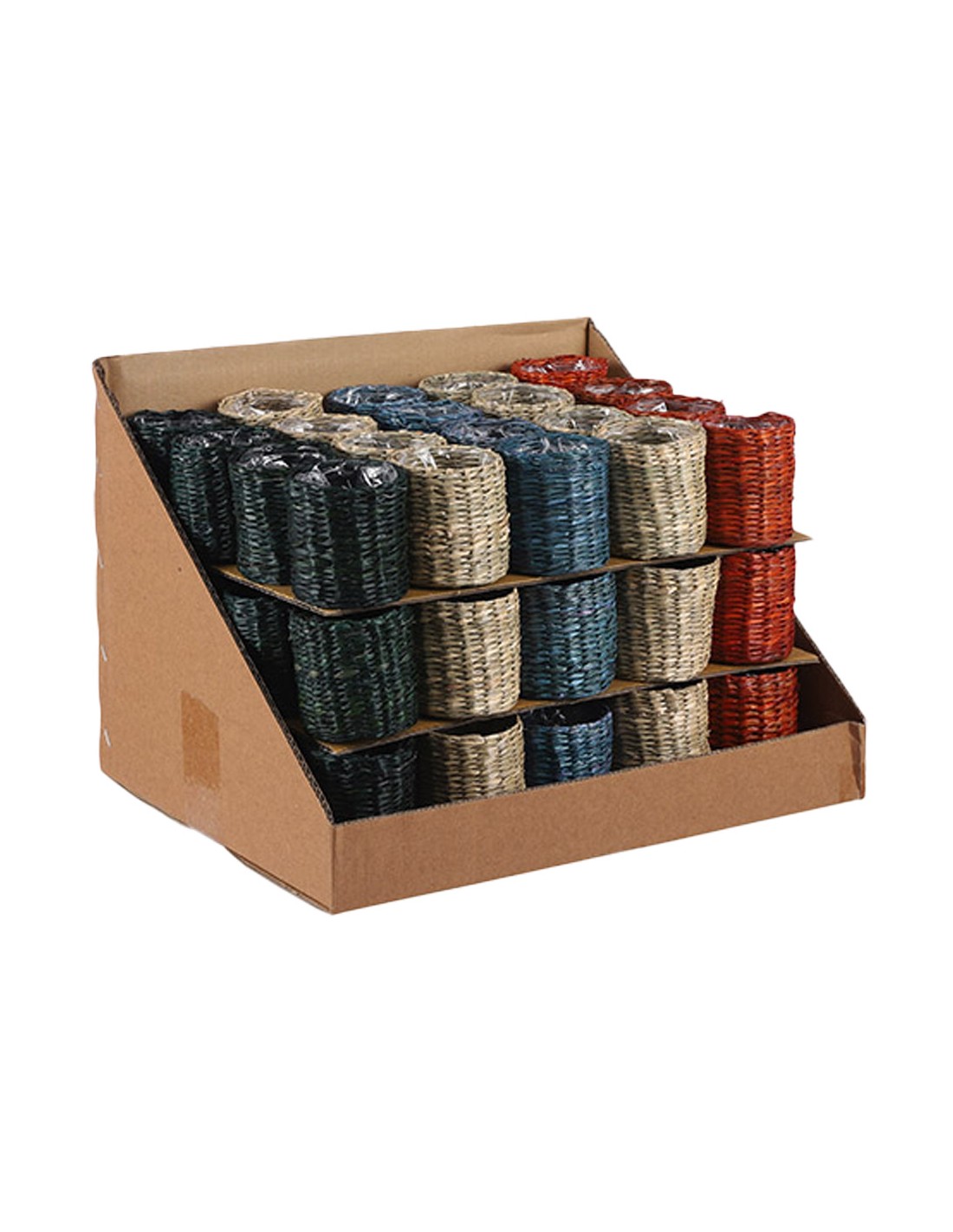Cesto modelo alexis color variado ø7x7cm. material mimbre. colores: naranja, beige, verde, azul