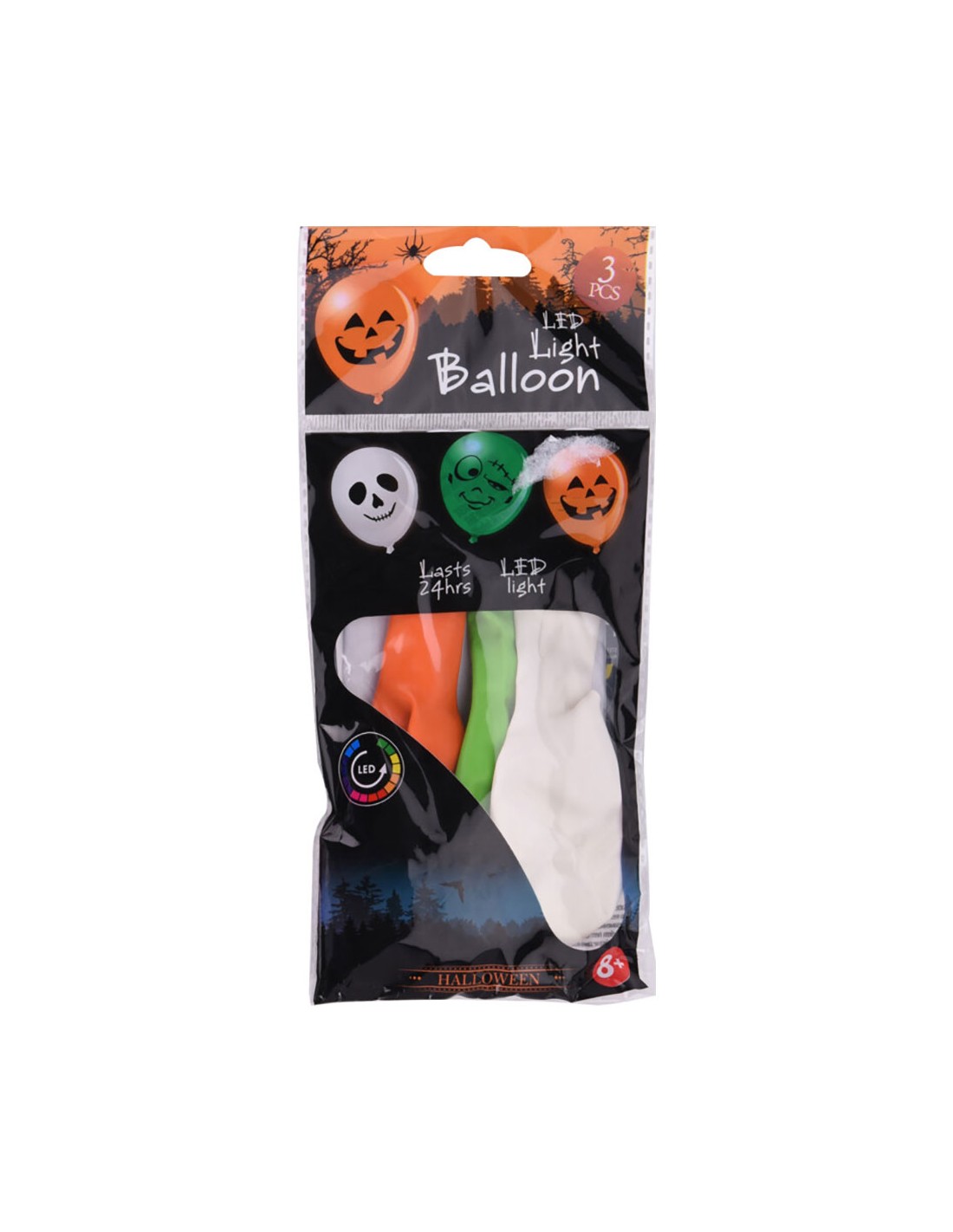 Pack 3 globos halloween con led, modelos surtidos, funciona con 2 pilas ag3 incluidas. tamaño 10x15x21cm