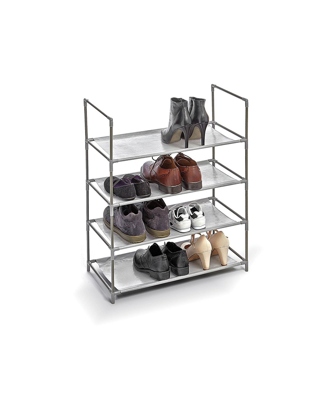 Zapatero 4 baldas gris 58,5x28,5x70cm. capacidad para 12 pares de zapatos, apilable con otros zapateros.