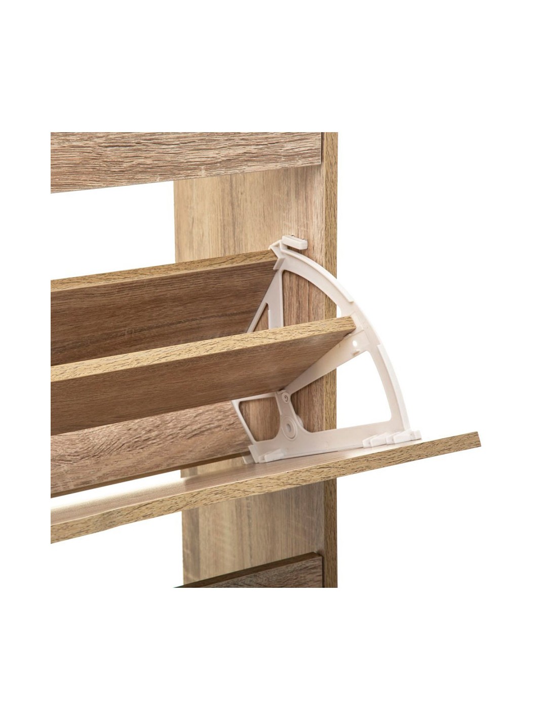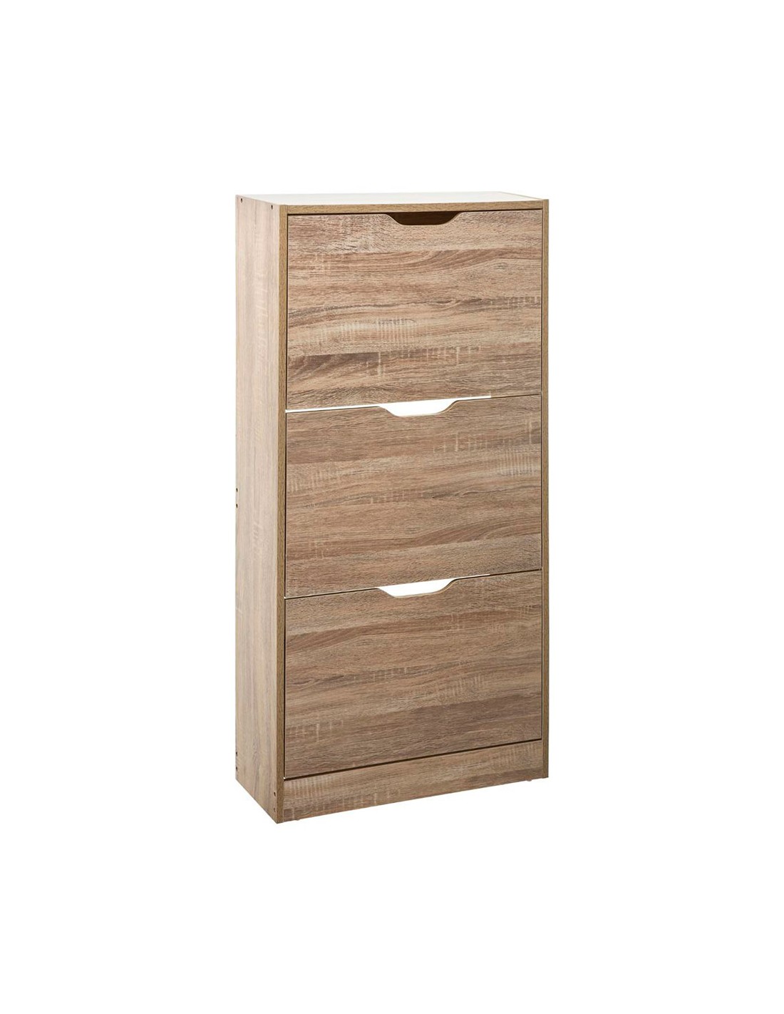 Zapatero de madera 115x60x24cm color natural. 3 compartimentos para 18 pares de zapatos