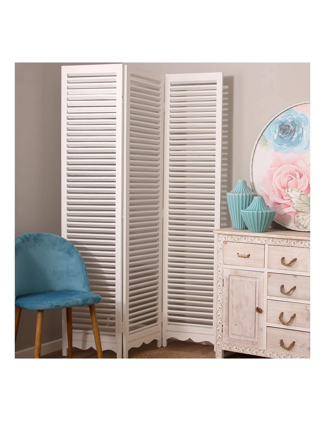 Biombo madera color blanco 170x119cm