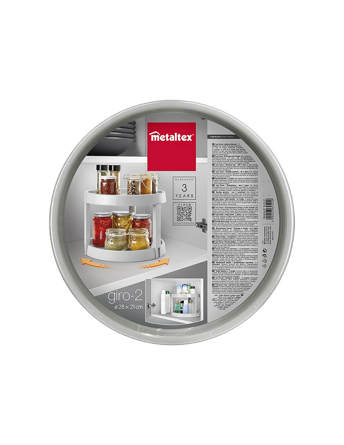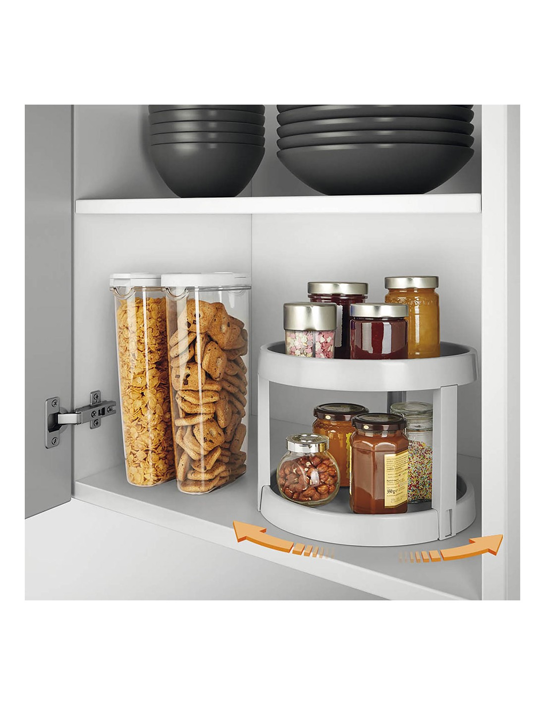 Organizador giratorio 2 alturas 'giro-2' dimensiones: ø28x21cm (diametro/altura) metaltex. simplemente gíralo para acceder facilmente a lo que necesites. indicado para armarios en la cocina, despensa o baño. plastico ps color gris. con pies antideslizantes.