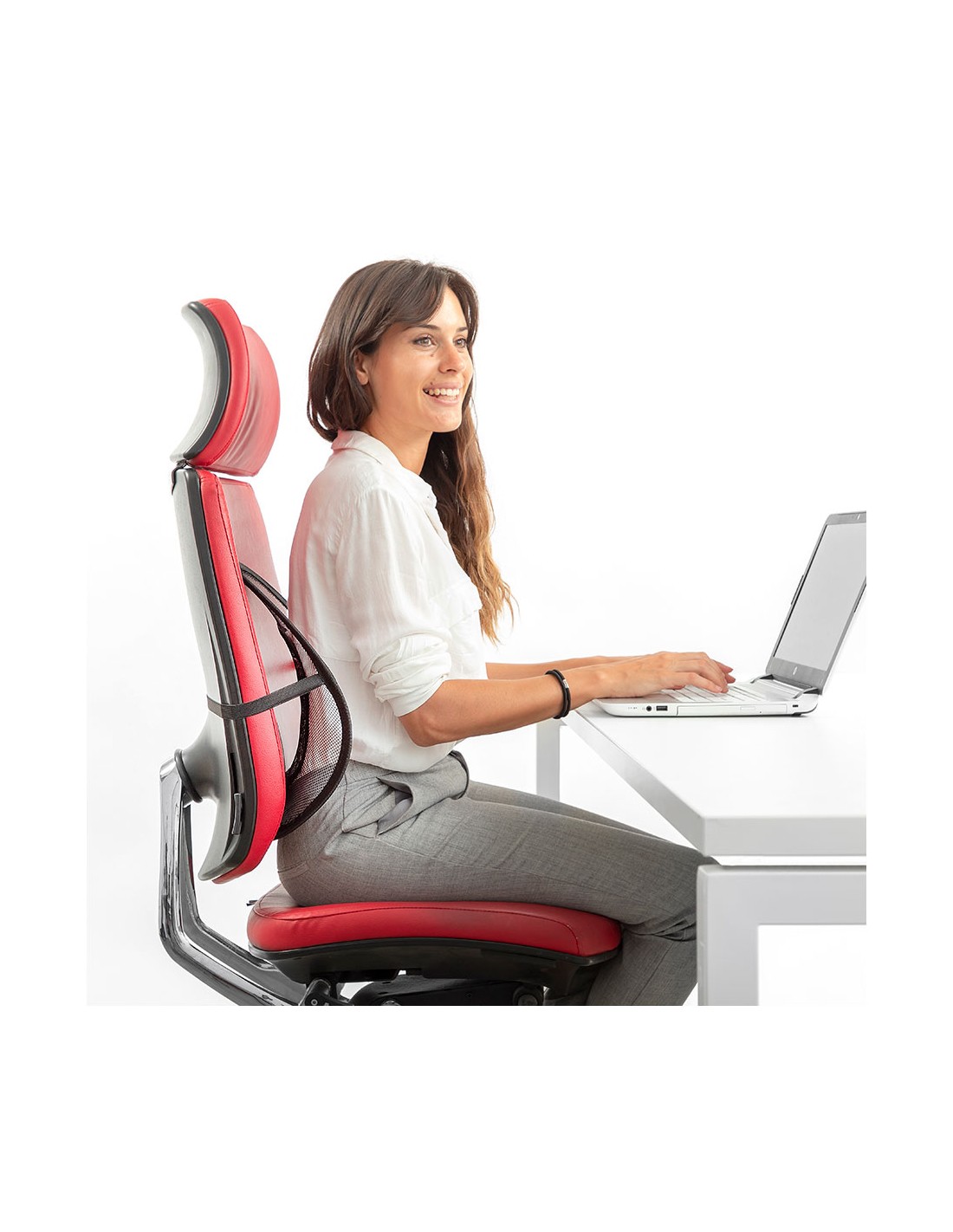 Respaldo lumbar portátil transpirable v0103128 innovagoods. un práctico invento para llevar a cualquier parte y mejorar la postura al sentarse, logrando el máximo confort y comodidad. su innovador diseño orgánico ayuda a relajar la espalda y optimiza la ergonomía. además, su tejido de malla está especialmente diseñado para favorecer la circulación del aire y una mejor transpiración. perfecto para las sillas de oficina.