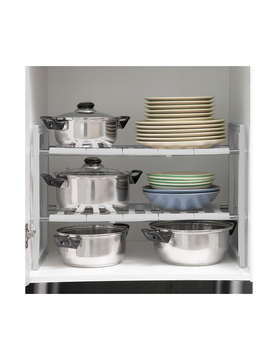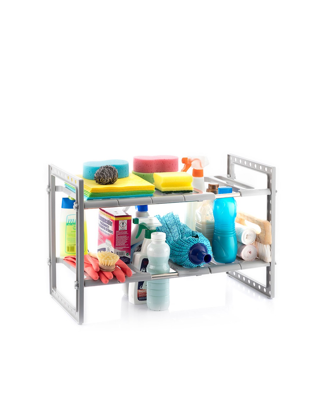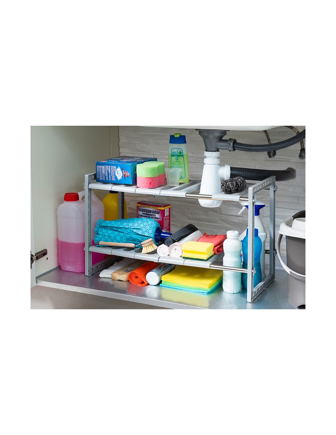 Estantería extensible 37,5-66,5cm para fregadero shibblek 2 estantes v0103677 innovagoods es perfecta para aprovechar al máximo el espacio disponible debajo del fregadero, ya que permite almacenar y mantener ordenados multitud de utensilios y productos de limpieza. en la cocina, también es muy útil para el almacenaje de ollas, sartenes, cazos, etc.