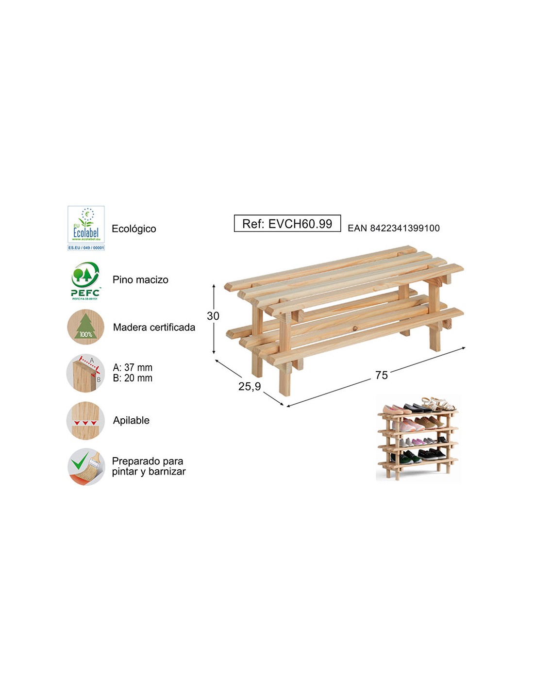 Zapatero de pino apilable evolution 30x25,9x75cm astigarraga