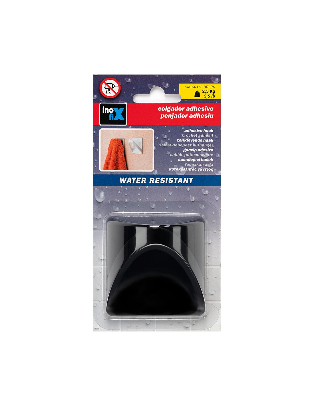 Colgador resistente al agua "cinta" negro mate 2190-3 inofix. adhesivo resistente a la humedad y altas temperaturas. peso máx. soportado 2,5kg