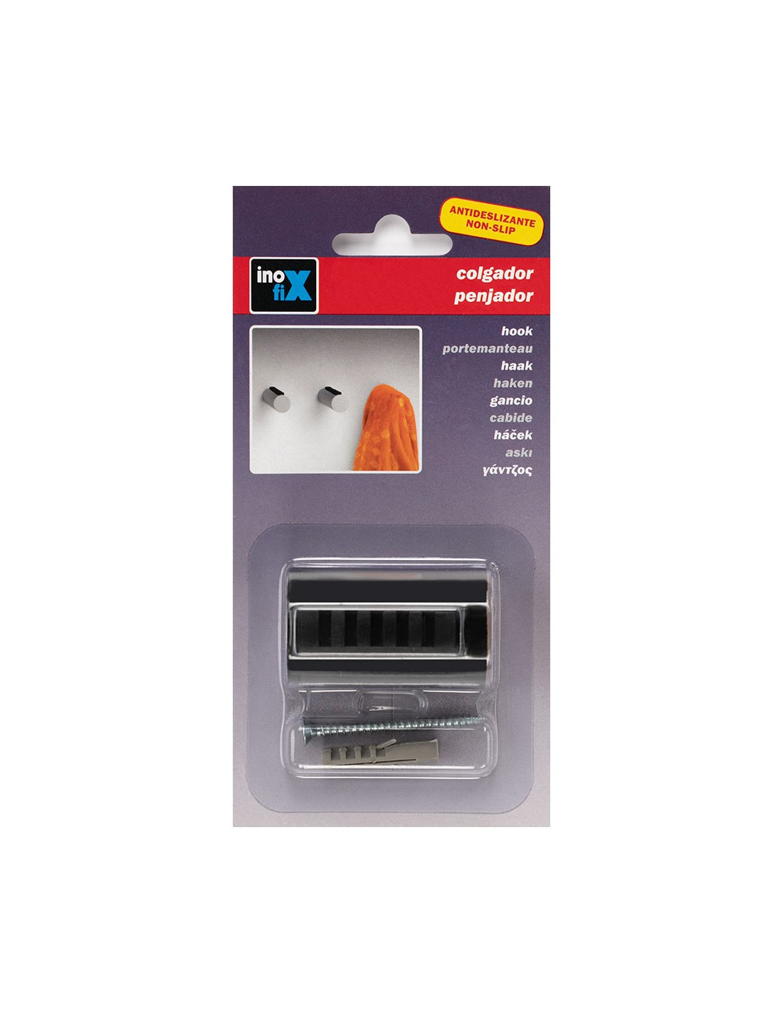 Colgador cilíndrico negro mate 3087-3 inofix. colgador cilíndrico con pieza antideslizante para una mayor sujeción de las prendas. la goma antideslizante dispone de hendiduras para colgar perchas de ropa. tornillo incluido. incorpora adhesivo de prefijación para facilitar el montaje. peso max. soportado 5kg