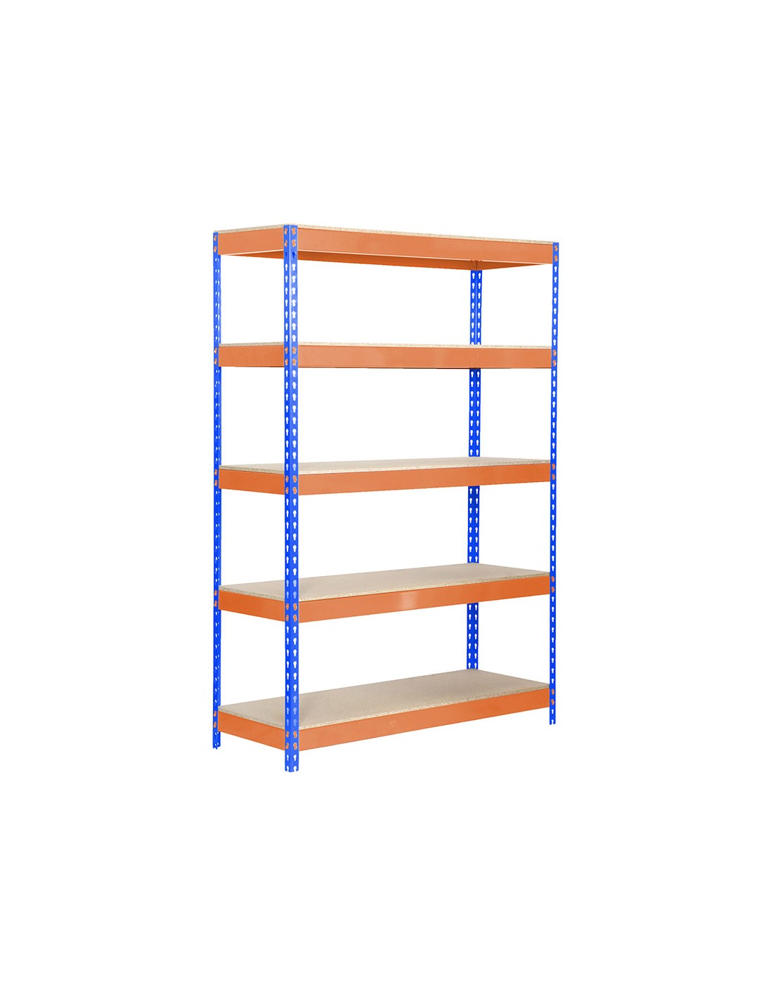 Estanteríametálicasintornillosdecolorazul/naranja/maderaconcapacidaddecargaporestantede300kg.elnúmerodeestanteses5ylasmedidas(altoxanchoxfondo)son2000x1200x600mm.incluyebandejasdeaglomerado.productoespañol,calidadeuropea,podrásencontrarlasintruccionesdemontajeensuinterior.medidasenusodelproducto:1975x1210x610mm