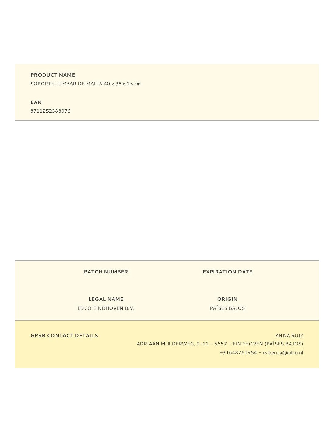 Soporte lumbar de malla 40 x 38 x 15 cm