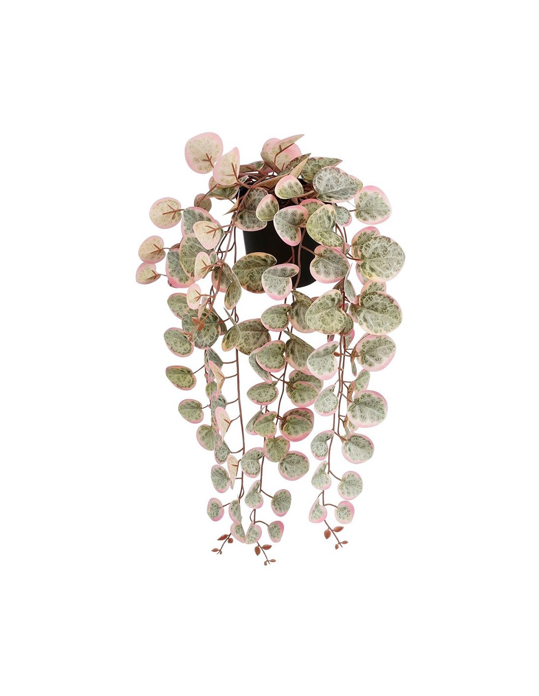 Planta artificial colgante ceropegia woodii "collar de corazones" rosa con maceta. a10xl46xan12cm
