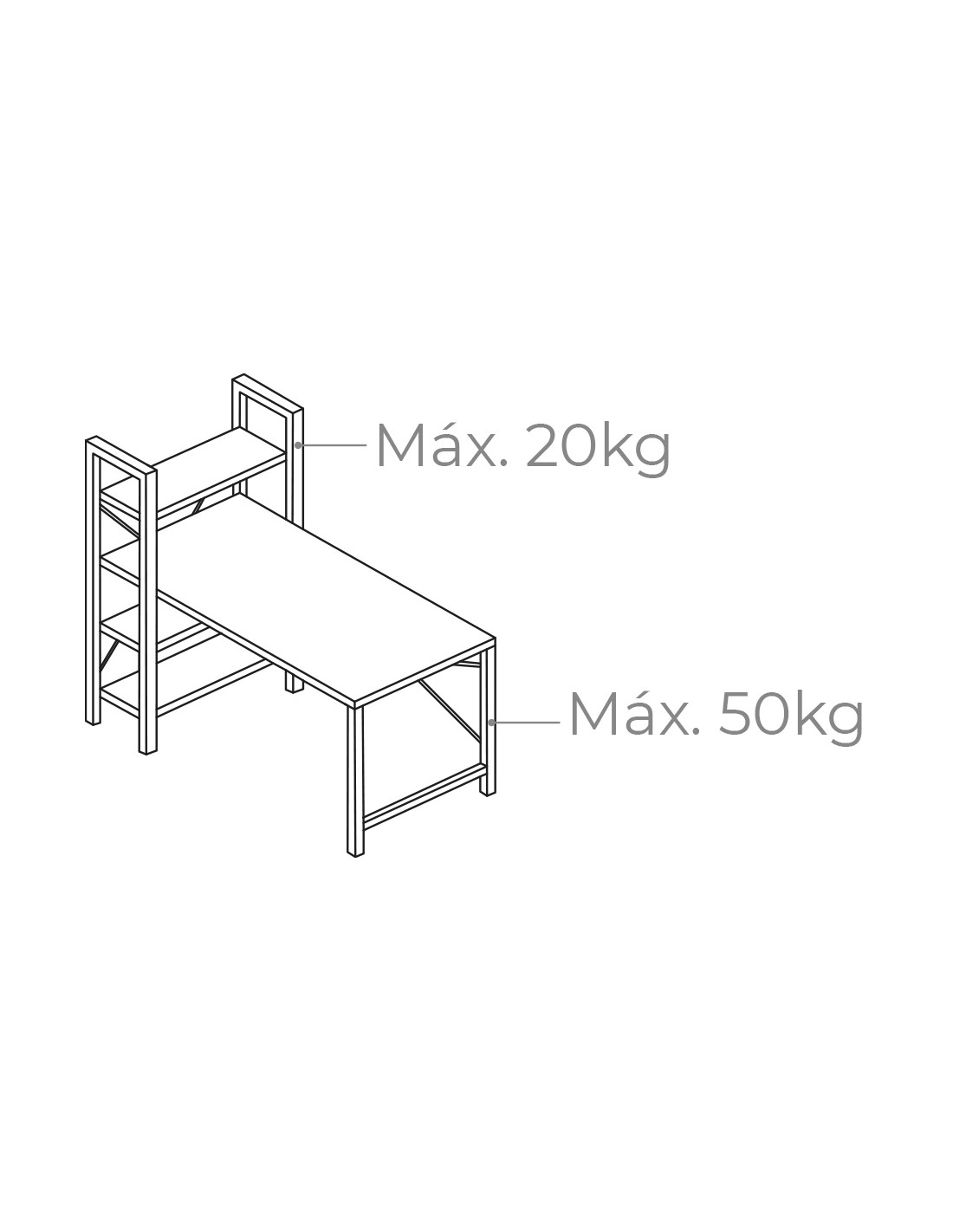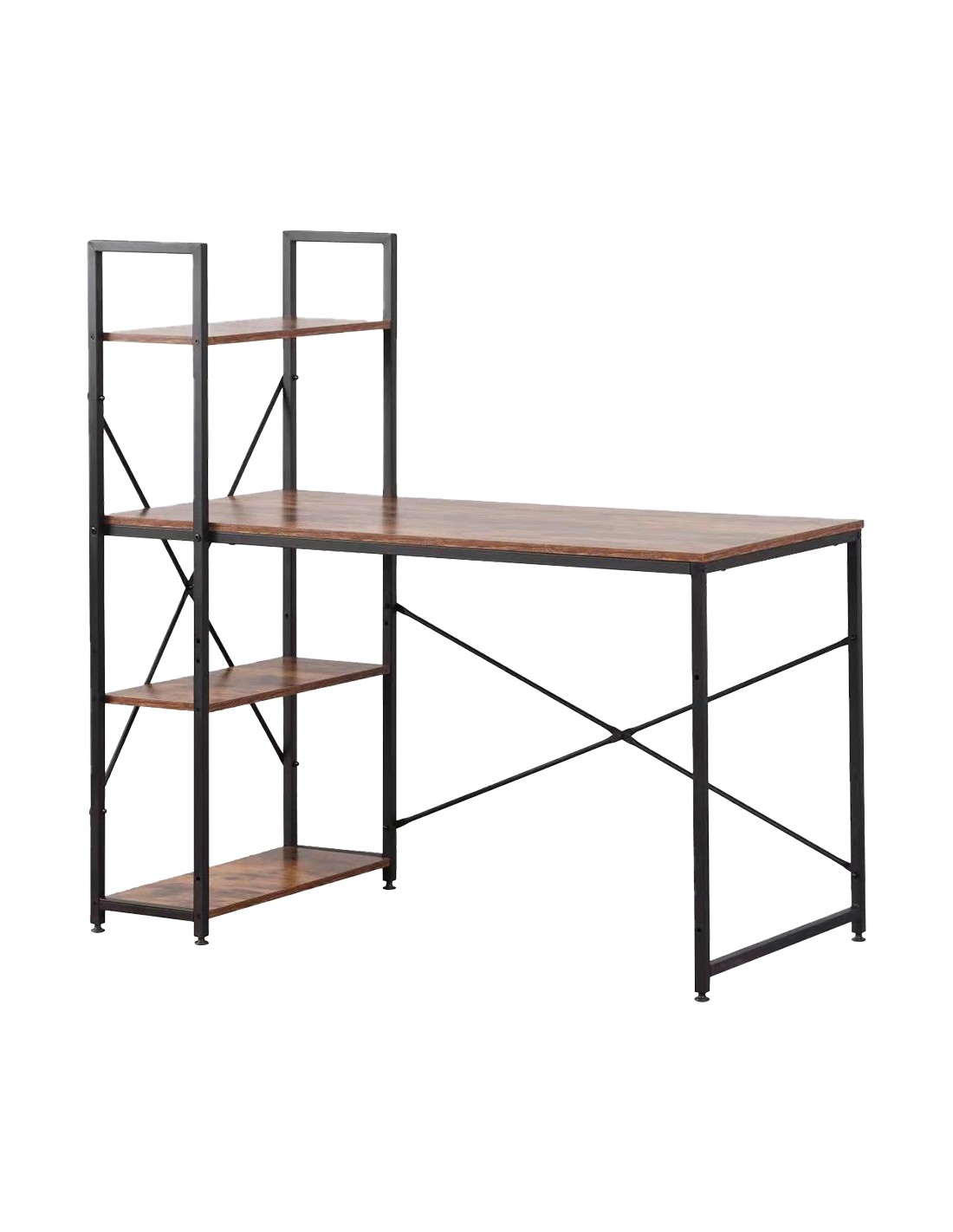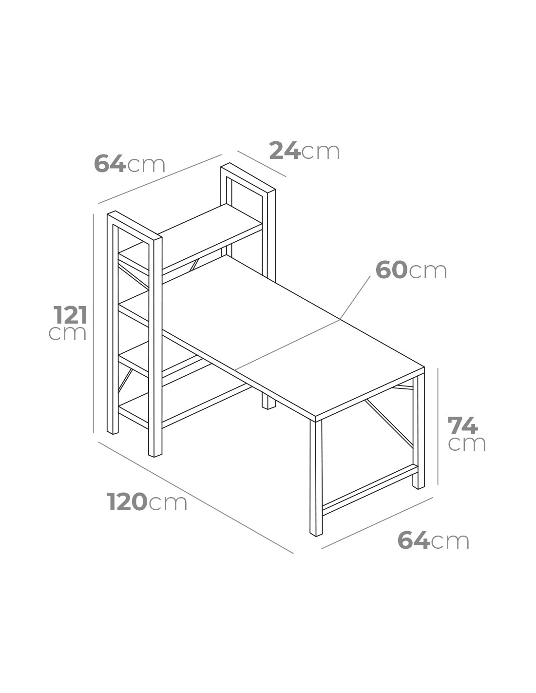 Escritorio de madera con estantería. medidas: 121 x 120 x 64cm. estilo industrial, con estructura de metal negra de facil montaje. peso máximo 70kg