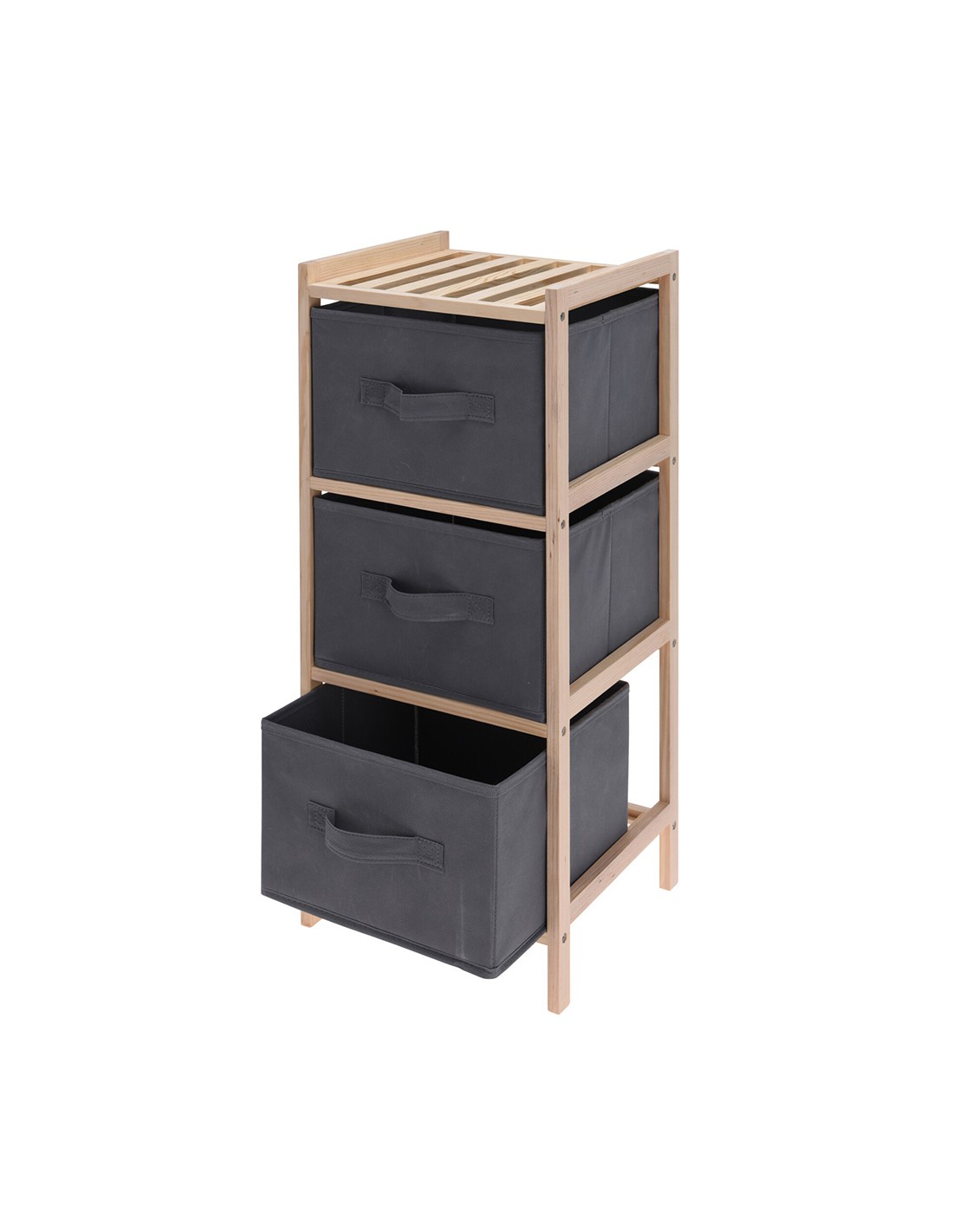 Armario de 3 compartimentos, estructura de madera 27,5x25,4x65cm, con 3 cajas de almacenaje de tela 25x25x17, 784630050. storage solutions