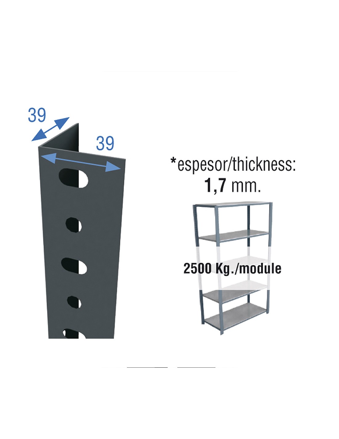 Perfilmetálico39x39mmparaestanter¡aclásicacontornillos.espesor:1,7mm.capacidaddecarga:2500kg/módulo(4perfiles).pinturaepoxi-poliésterral7046grisoscuro. simon rack