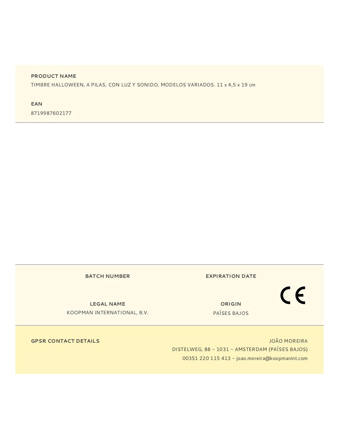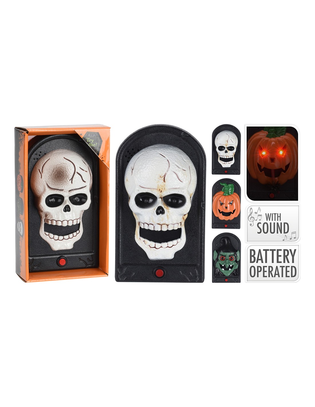 Timbre halloween, con luz y sonido, funciona con pilas 3 x aaa incluidas, modelos variados, 11 x 4,5 x 19 cm