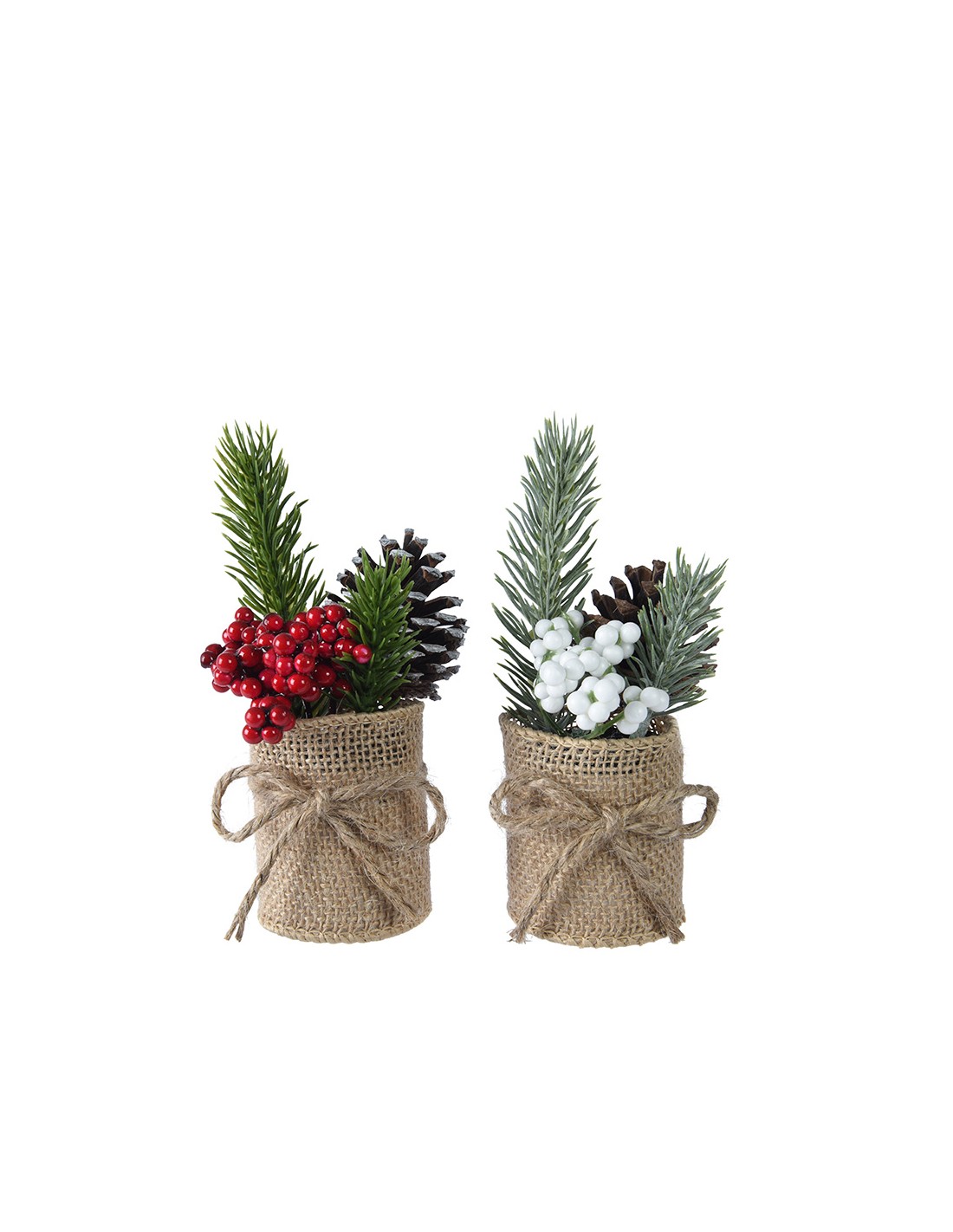 Maceta de yute pequeña, 2 modelos hojas/piñas/bayas rojas, hojas/piñas/bayas blancas, decoración para interior, ø5 x 15 cm