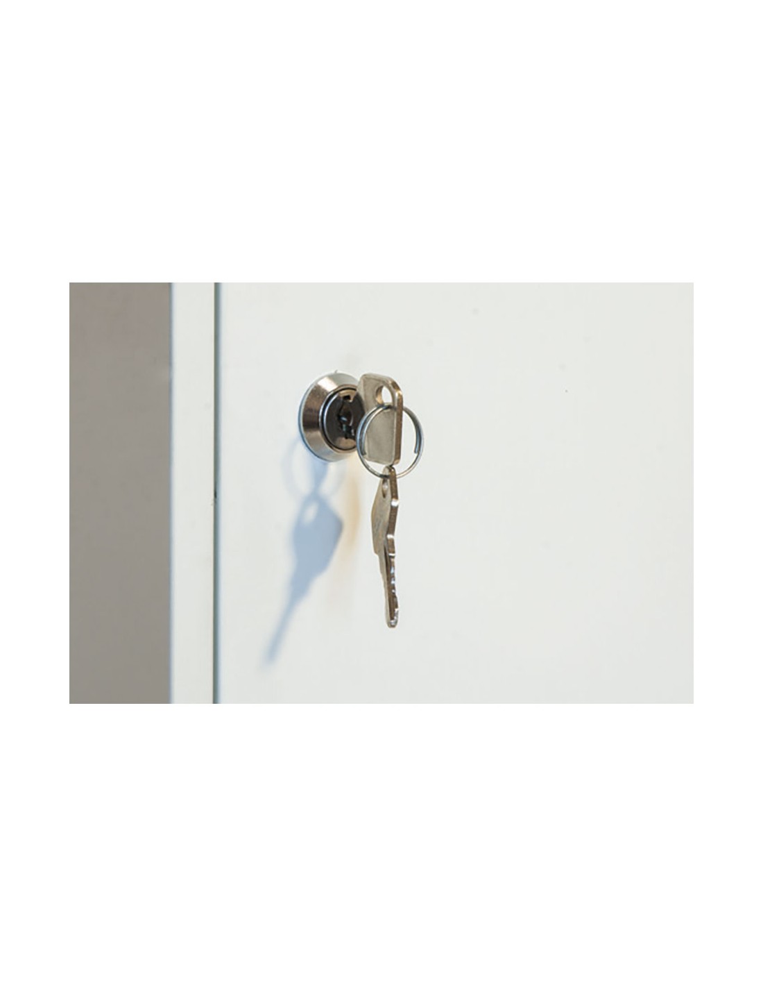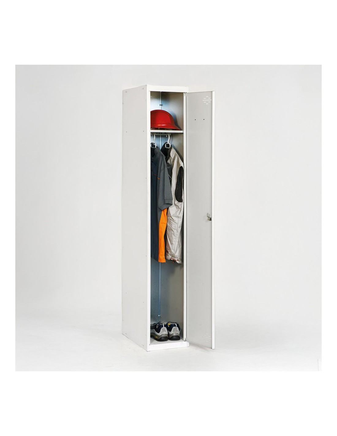 Taquilla metálica de color gris/gris y medidas 30 x 50 x 180 cm. tiene 1 estante e incluye cerradura, llave y placa. hecho en españa, calidad europea.