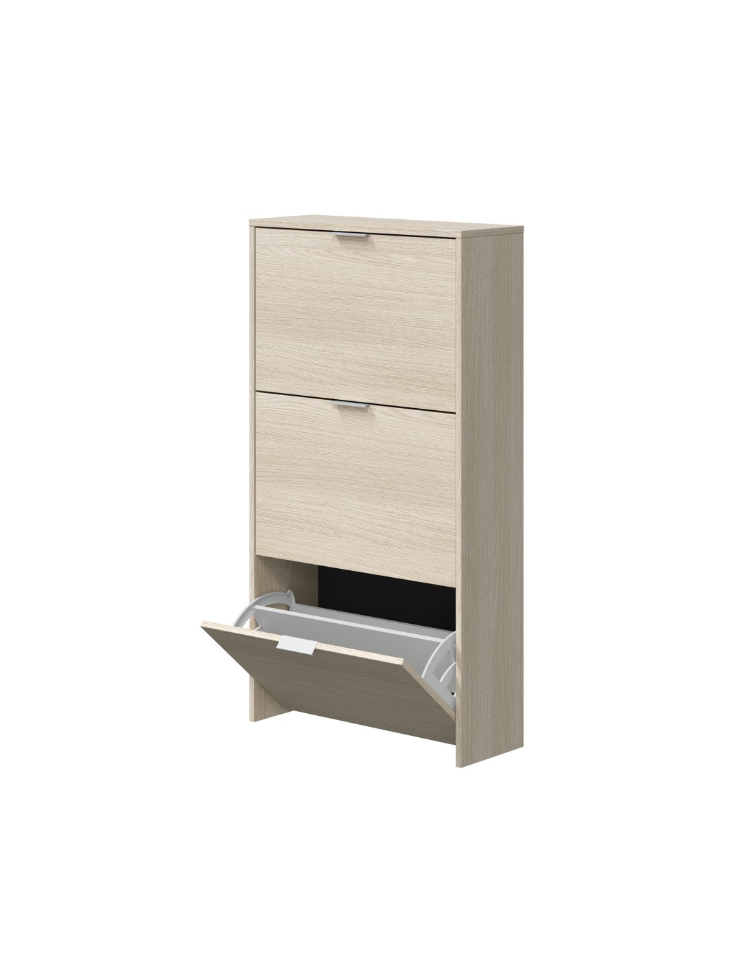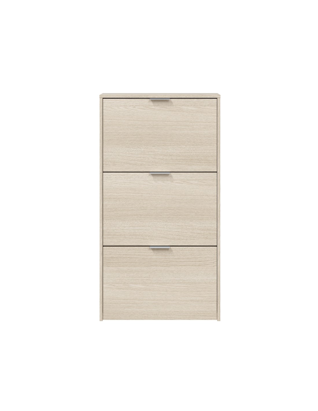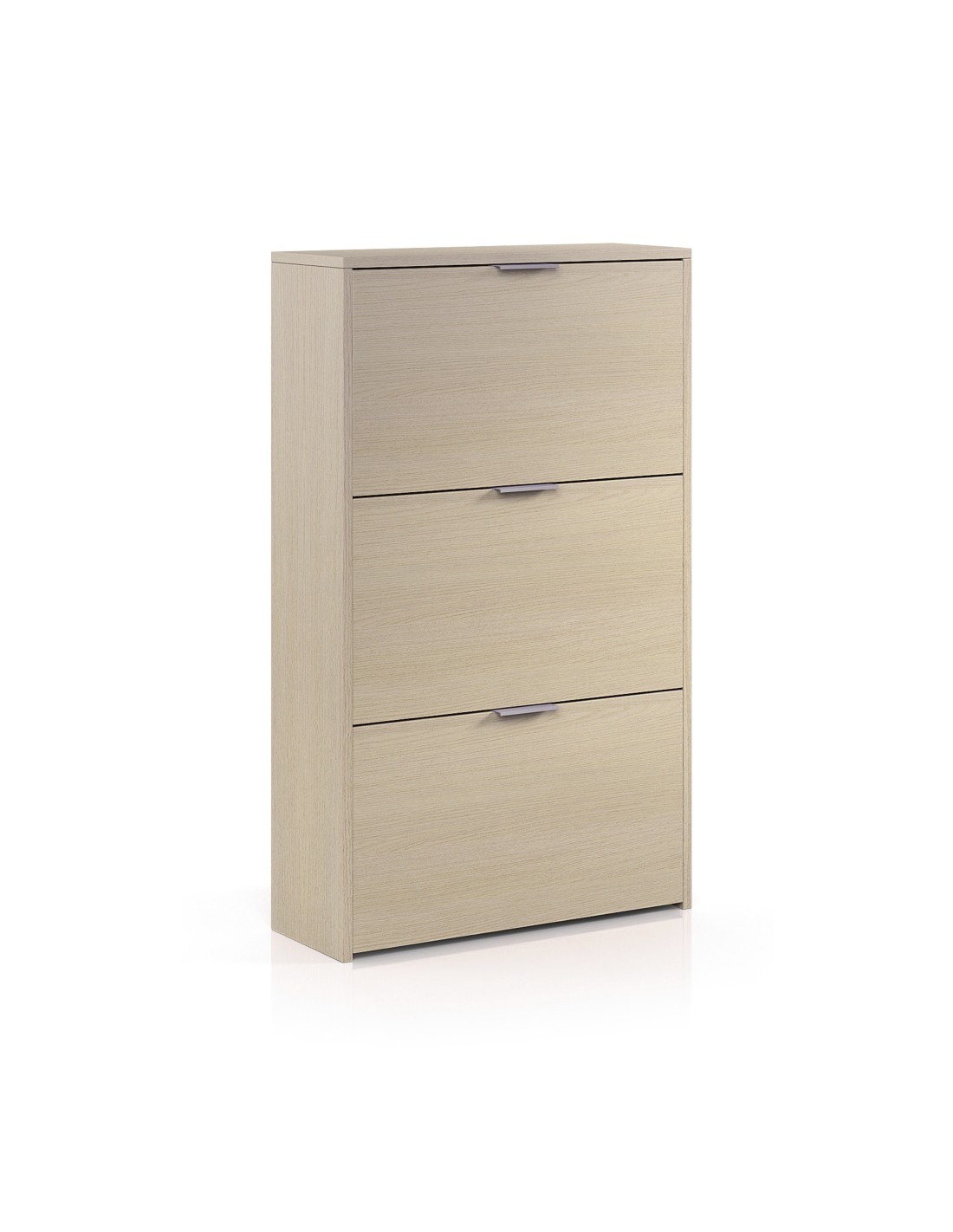 Mueble zapatero con 3 puertas abatibles de color roble. capacidad: 18 pares de zapatos aproximadamente. material: melamina. contiene: sistema abatible abs de dos bandejas para las puertas abatibles, tacos abs quitarruidos y antirayas y tiradores metálicos. medidas: 60 x 22 x 113 cm. servicio de postventa gratuito: postventa@fores-group.com