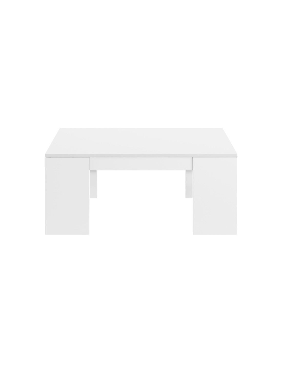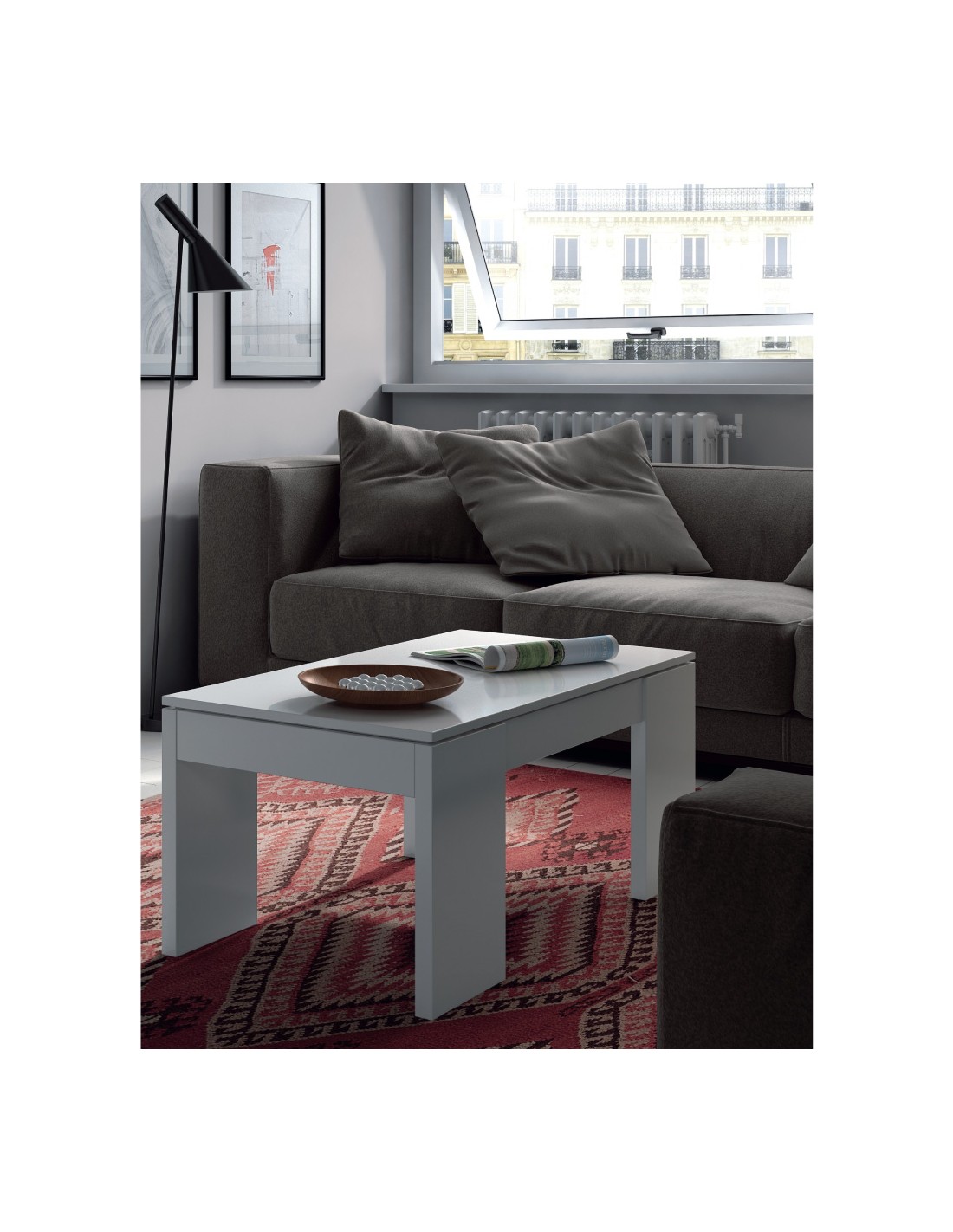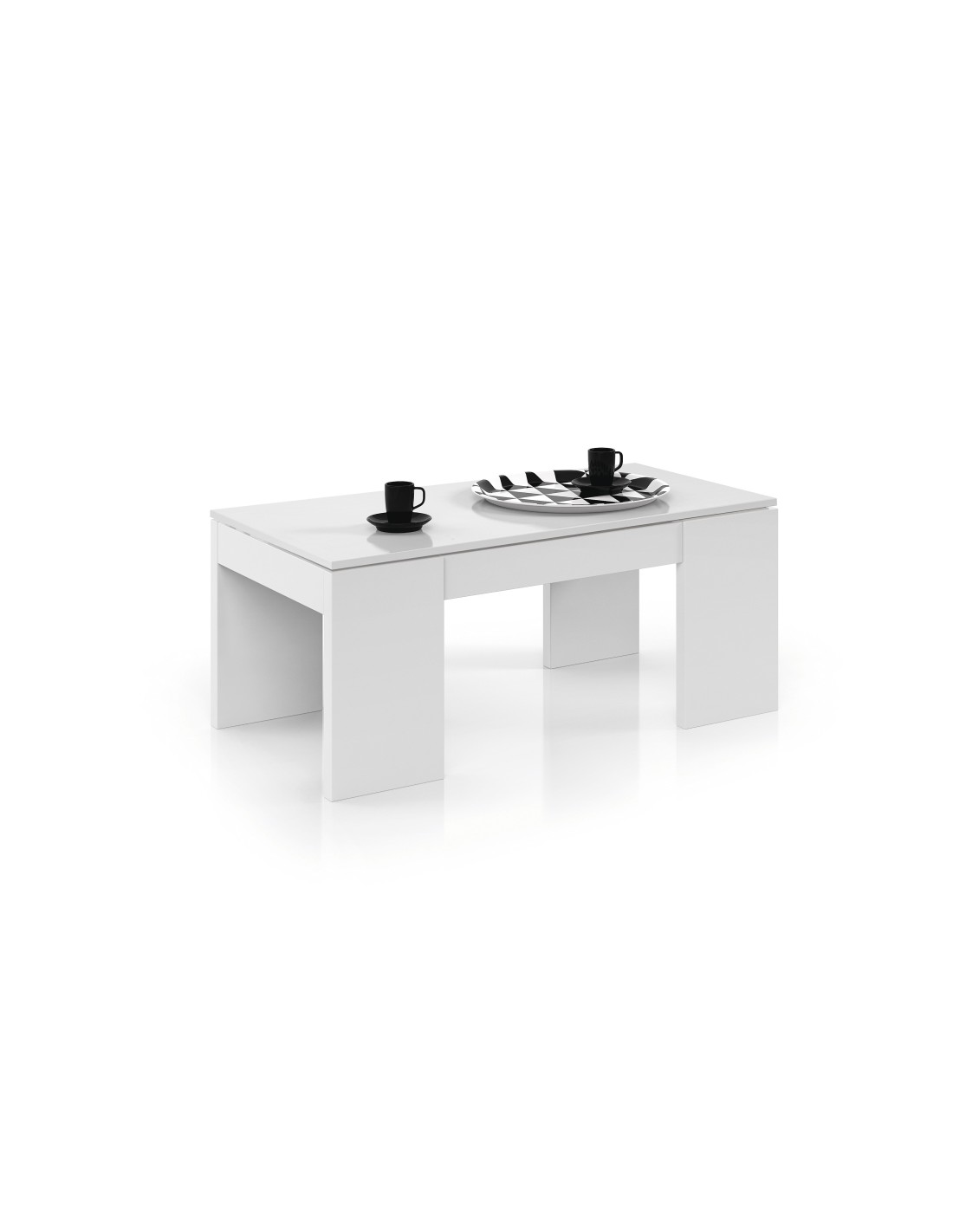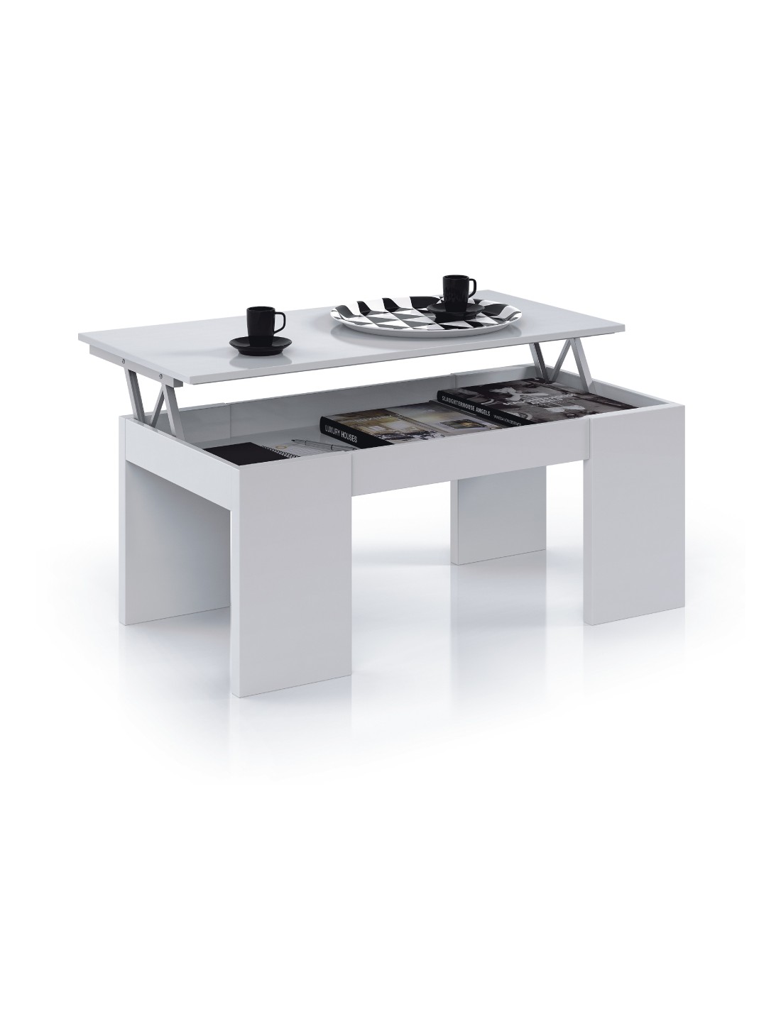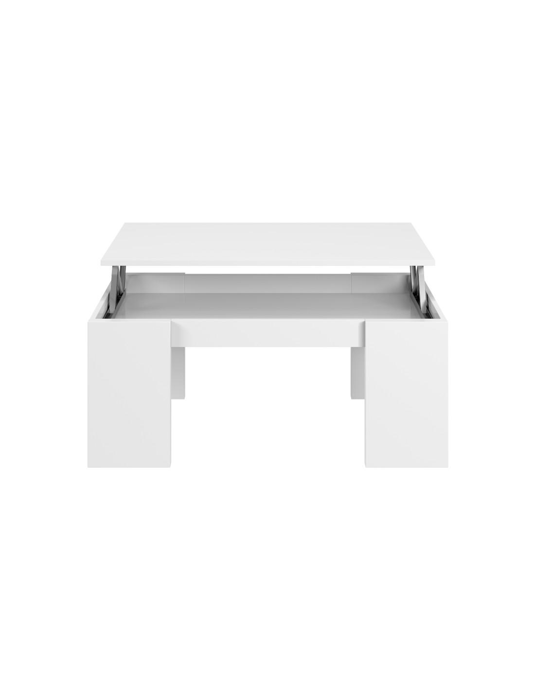 Mesa centro elevable con espacio de almacenamiento que queda oculta al cerrar la tapa. color: blanco brillo. material: melamina. contiene: bisagras metálicas. medidas cerrada: 100 x 50 x 43 cm abierta: 100 x 68 x 54 cm hueco contenedor: 97 x 44 x 6 cm. servicio de postventa gratuito: postventa@fores-group.com