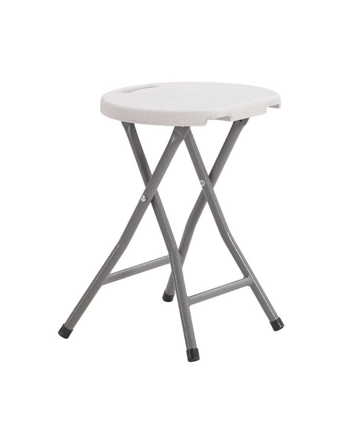 Taburete plegable, carga máxima 150 kg. material plástico de alta densidad, grosor tubo de acero ø19 mm, color blanco. medida 33 x 30 x 45 cm