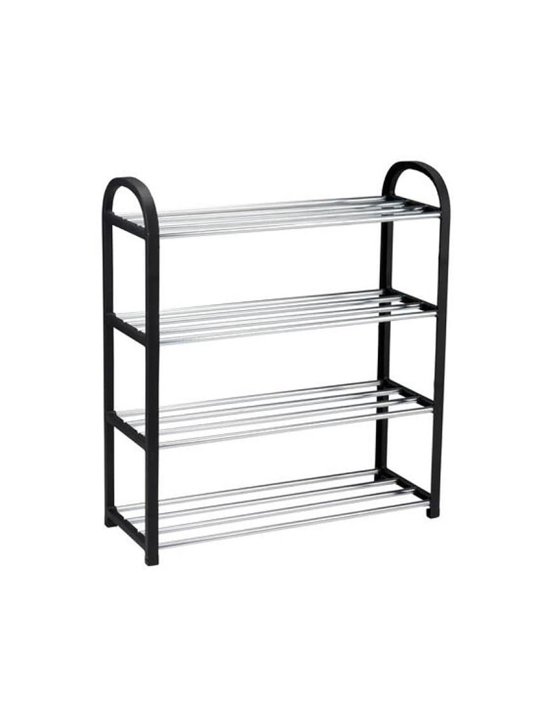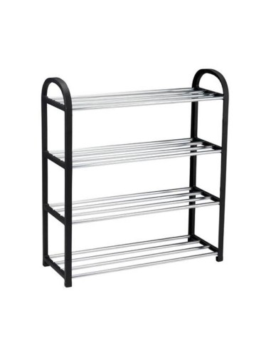 Zapatero de 4 baldas, negro y aluminio, 50 x 18.5 x 57 cm