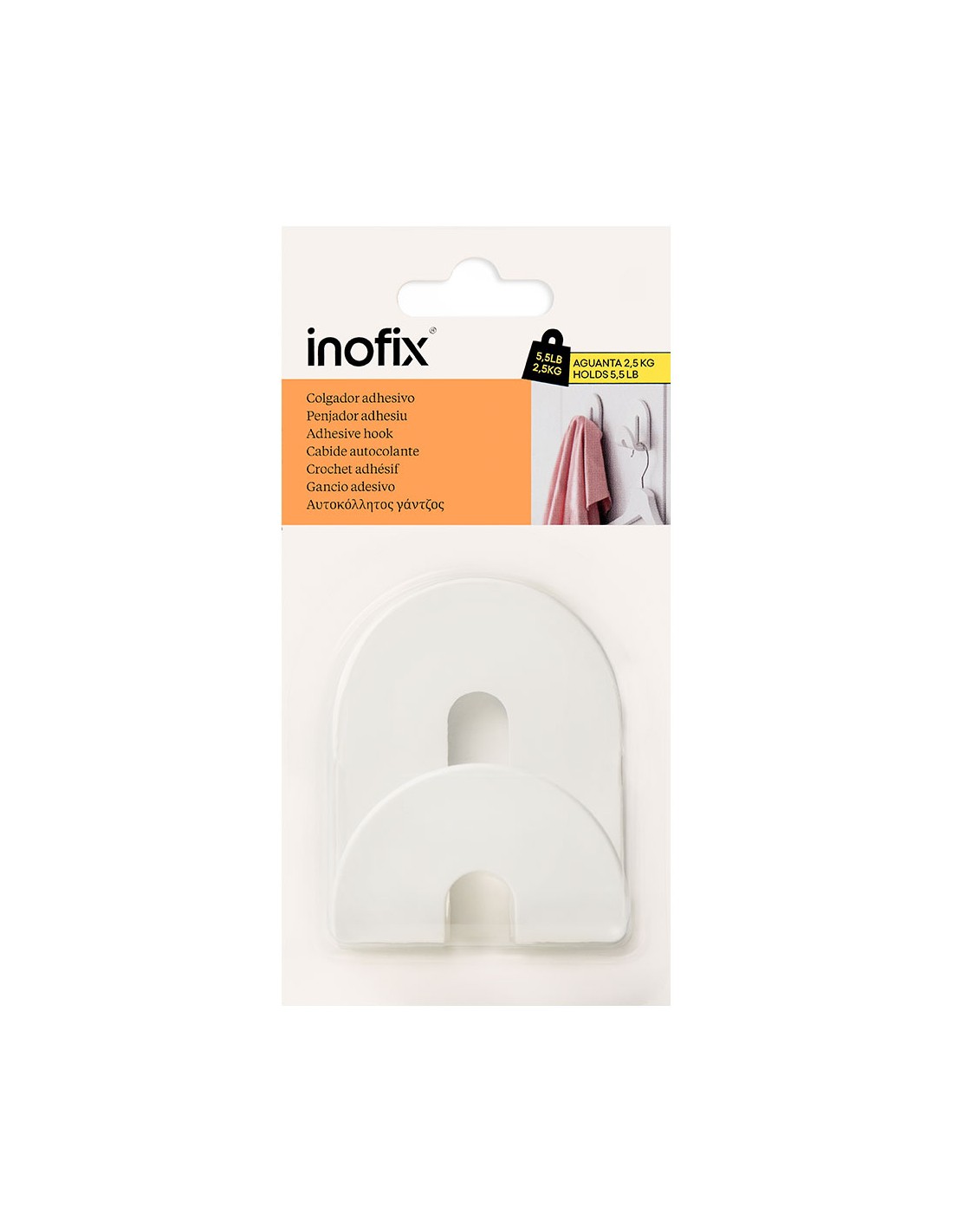 Colgador adhesivo calma blanco. peso máximo soportado: 2,5 kg, dimensiones 64 x 36 x 80 mm