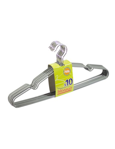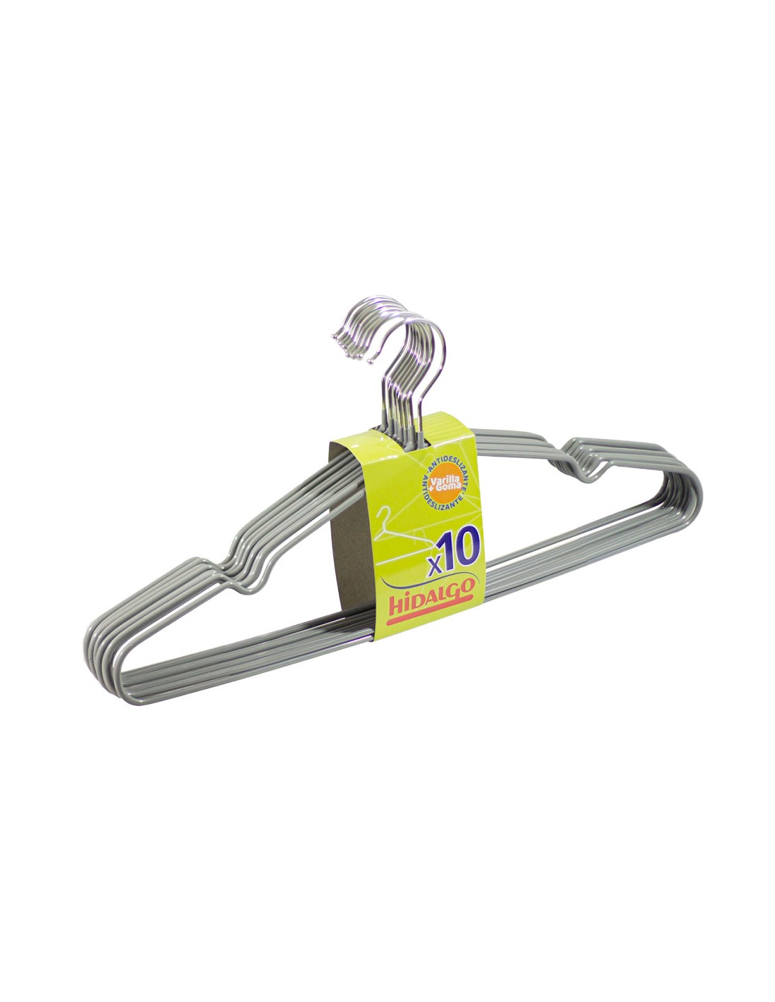 Perchas resistentes fabricadas en varilla metálica y recubiertas con goma antideslizante para evitar que la ropa se deslice. ideal para prendas delicadas, camisas, blusas, vestidos o ropa ligera. 10 uds, 40,5 x 0,5 x 18,5 cm