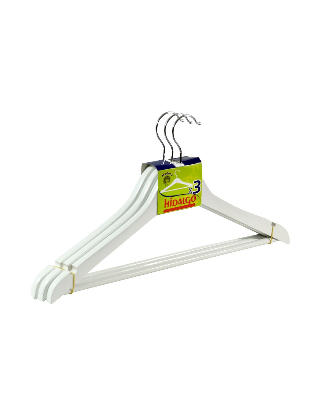Perchas fabricadas en madera natural pintada en blanco. diseño clásico, resistente y funcional. 3 uds, 44 x 1 x 22,5 cm