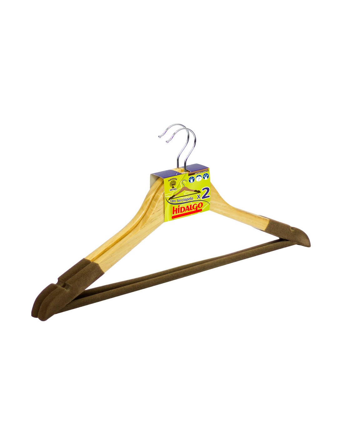 Perchas fabricadas en madera natural. diseño clásico, resistente y funcional. incorpora en los vértices izquierdo y derecho un acabado en terciopelo para evitar los deslizamientos de las prendas y, al mismo tiempo, es una protección para tus prendas más delicadas. 2 uds, 45 x 1,3 x 23,5 cm