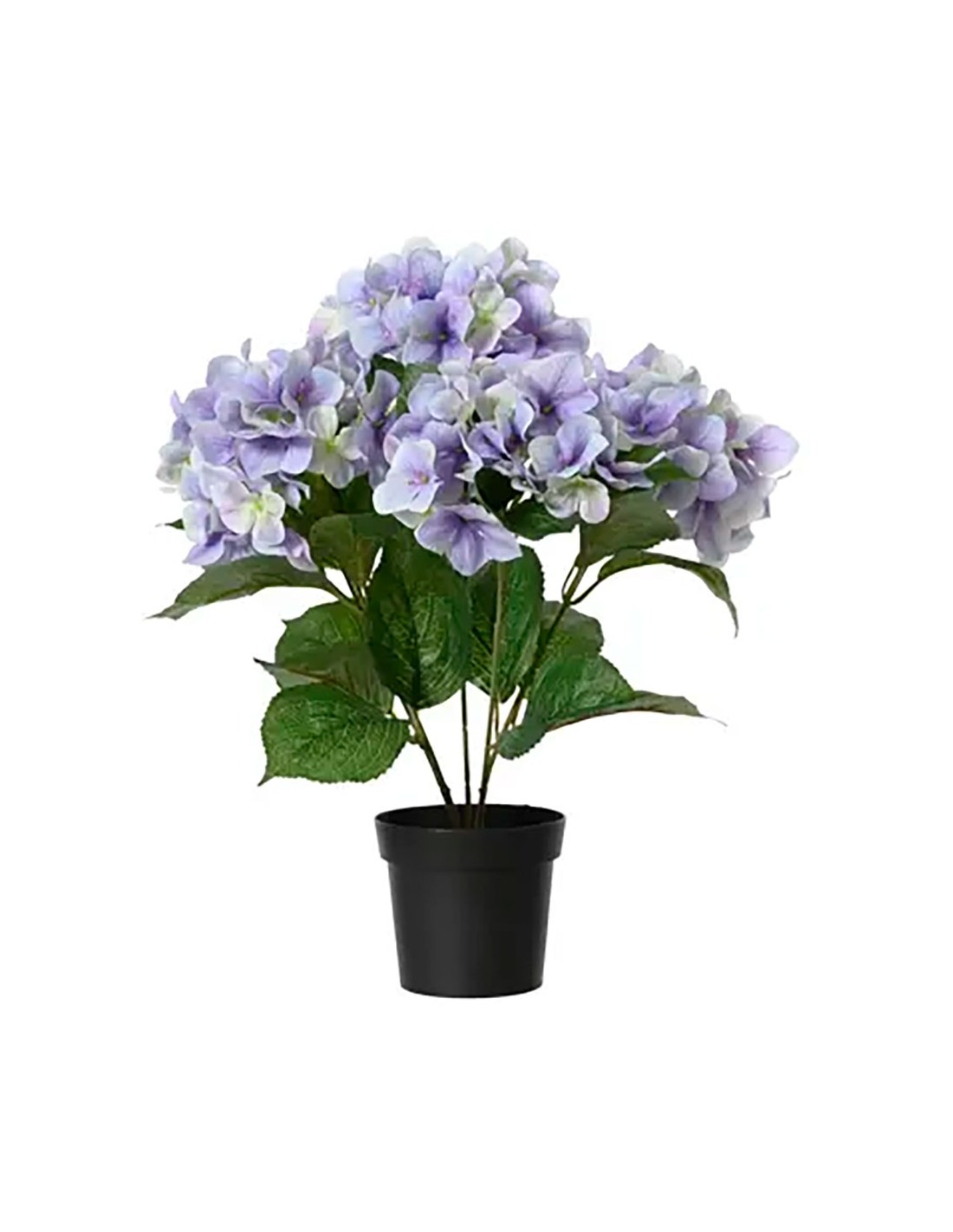 Maceta de hortensias lilas de poliéster, ø28 x 46 cm, macetero color negro ø12 cm