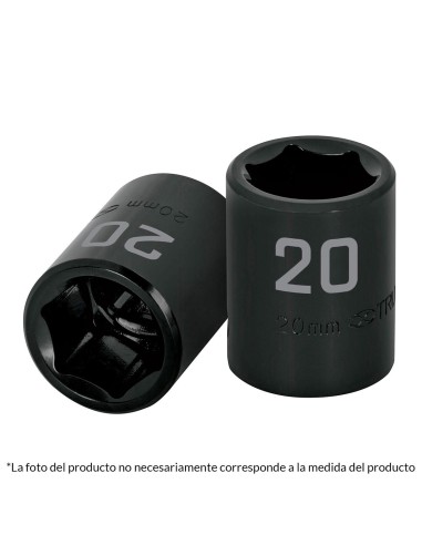 Llave vaso de impacto, hexagonal, de cuadro 1/2". Fabricada en acero al cromo, con sistema de sujeción Truper-Drive y medidas marcadas para fácil identificación. Ideal para herramientas neumáticas.