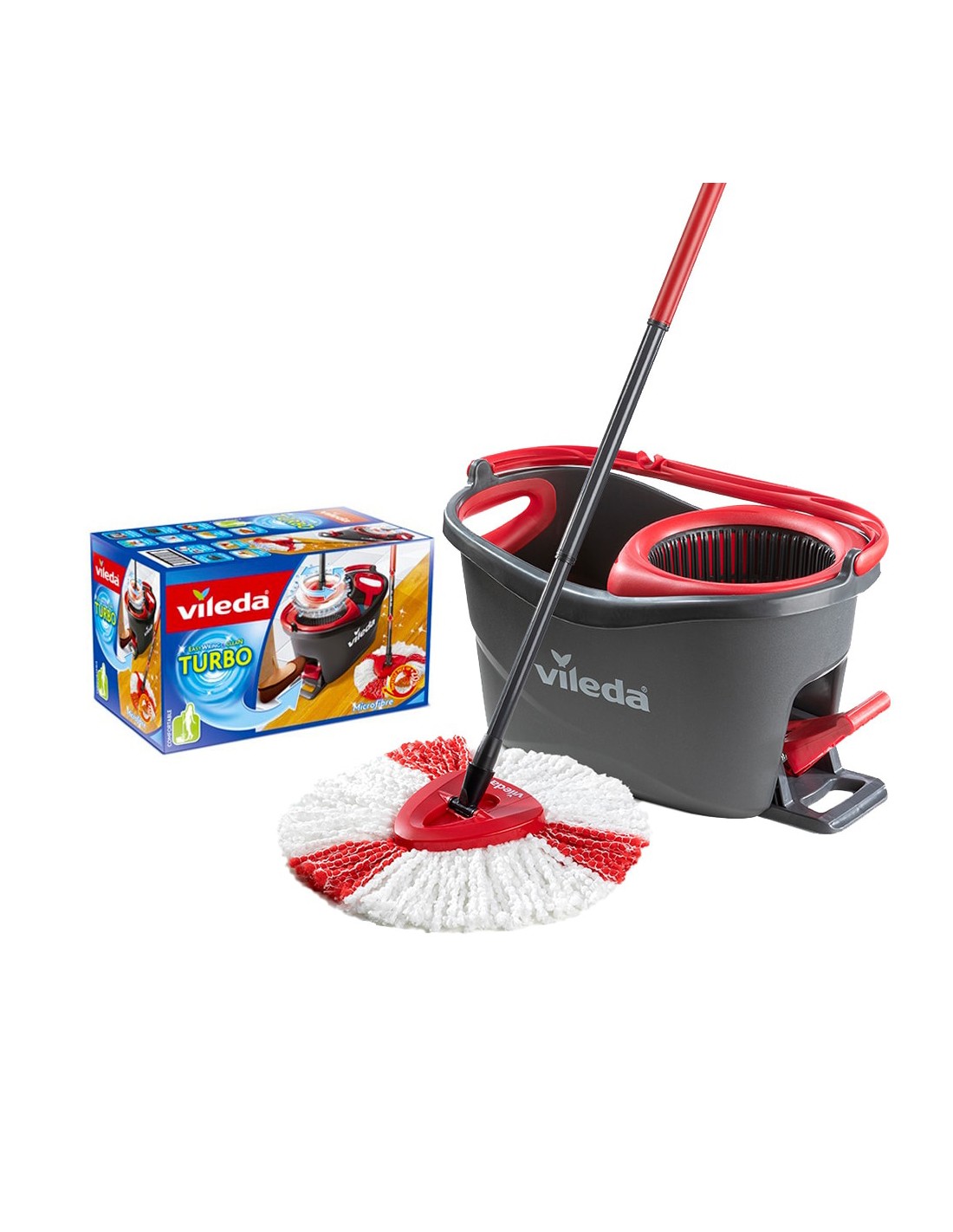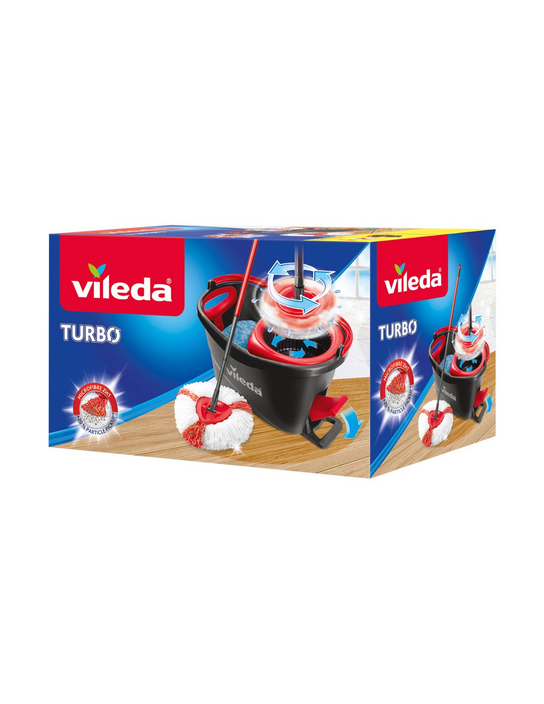 Set turbo vileda (easywring & clean). permite limpiar el suelo de una forma rápida y sin esfuerzo 6l. el set está compuesto por un cubo con sistema de escurrido por centrifugado que se acciona con un pedal y una fregona de microfibras y poliamida con palo telescopico que recoge hasta un 20% mas de particulas. es ideal para cualquier tipo de superficie, incluso para suelos delicados como parquet y laminados. gran capacidad 6 l. 48,6 x 29,6 x 29,3 cm