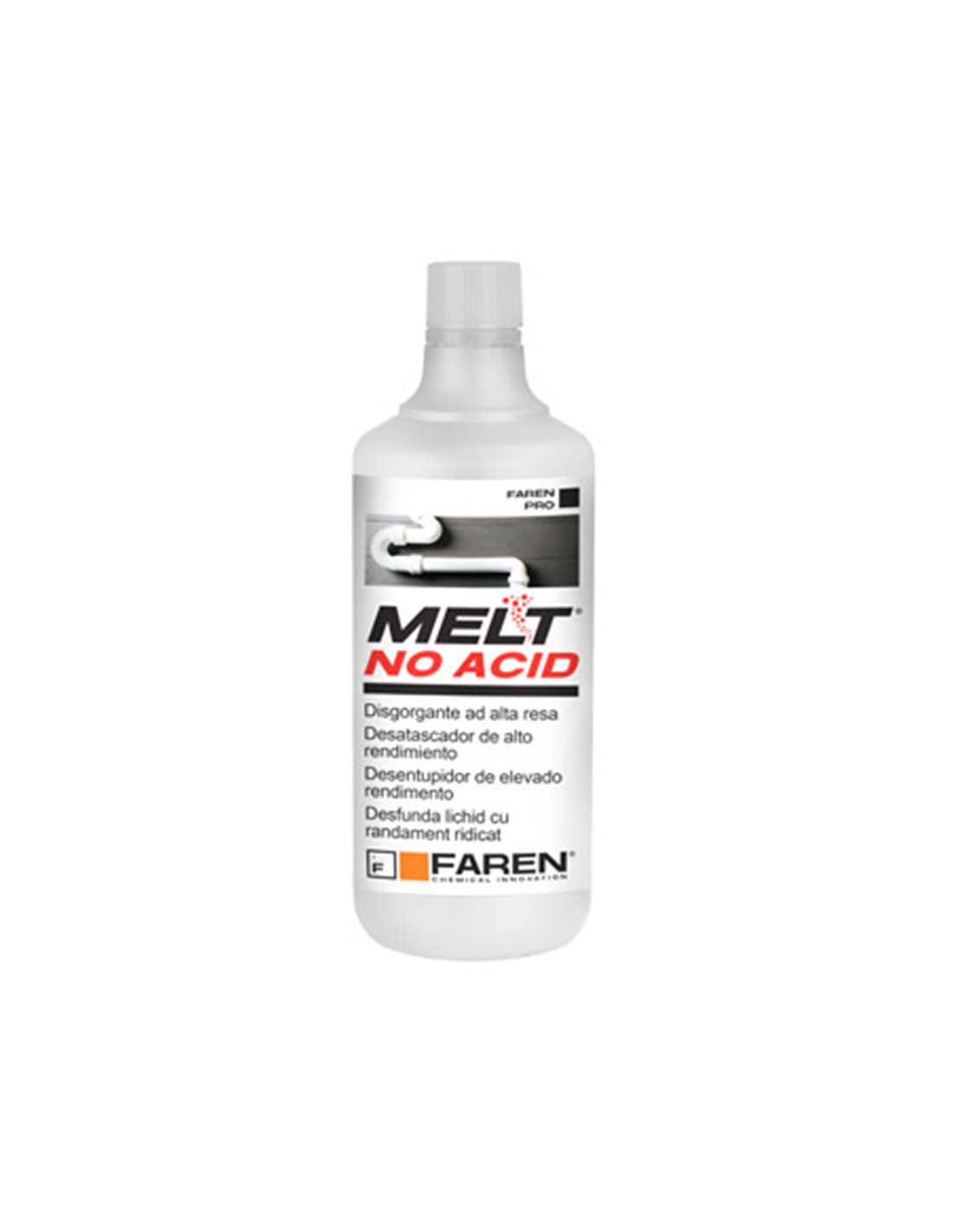 Desatascador sin ácido sulfúrico 1000ml. melt es una fórmula específica que elimina en poco tiempo, todo tipo de obstrucciones en desagües y s.of. cañerías producidas por restos orgánicos, tanto en el hogar como en ambientes profesionales. se presenta no solo como una solución al atasco puntual de forma rápida y segura, sino también como un excelente producto de mantenimiento y prevención para evitar esos molestos y siempre inoportunos atascos. 1000ml melt
