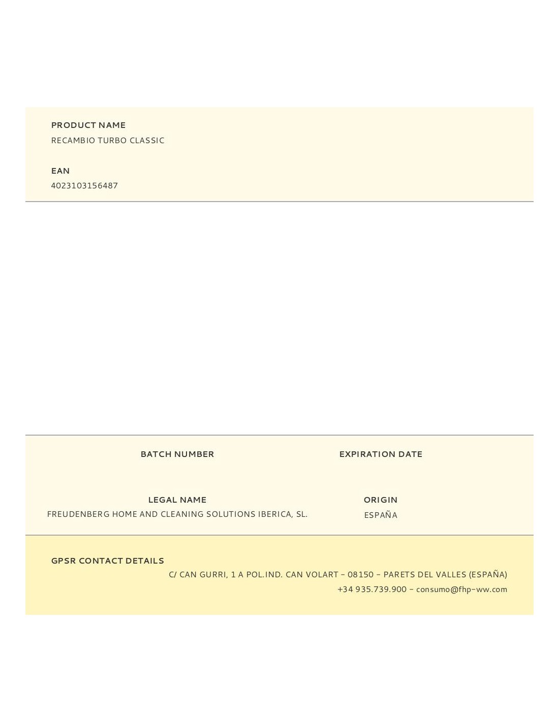 Recambio turbo classic easywring classic. recambio fregona 100% microfibras especial para el sistema de limpieza vileda turbo